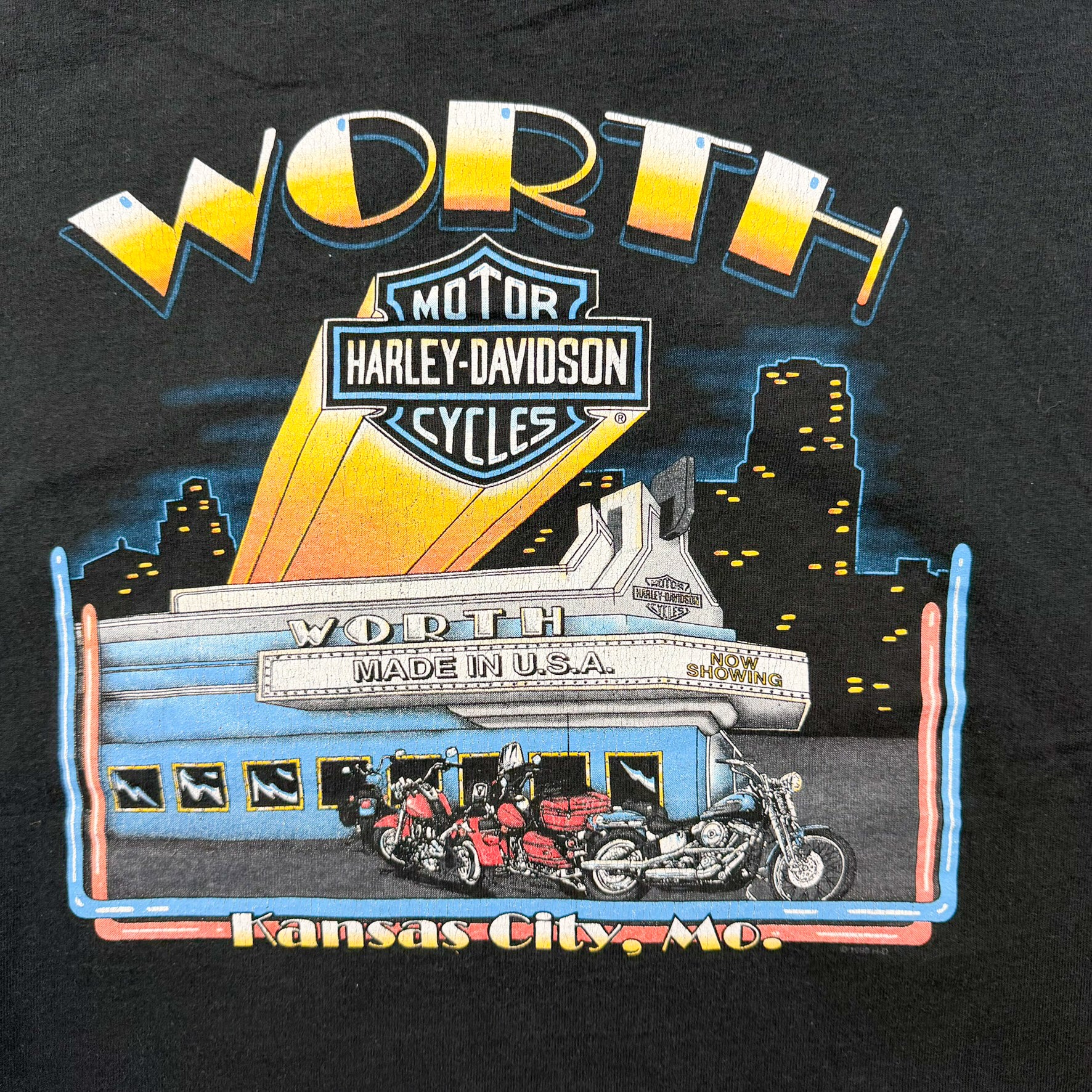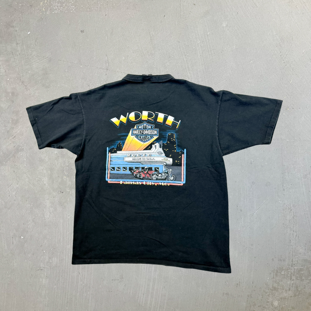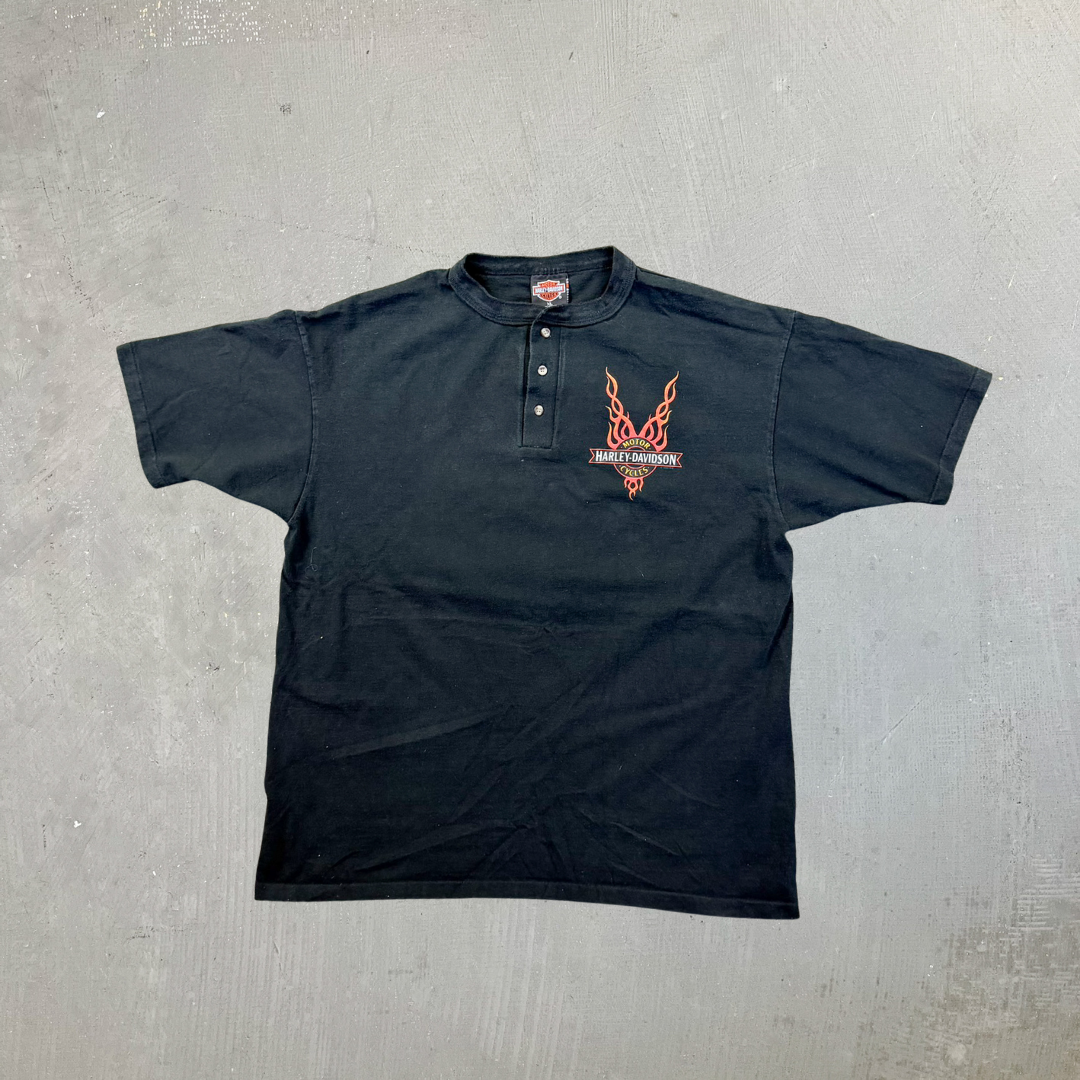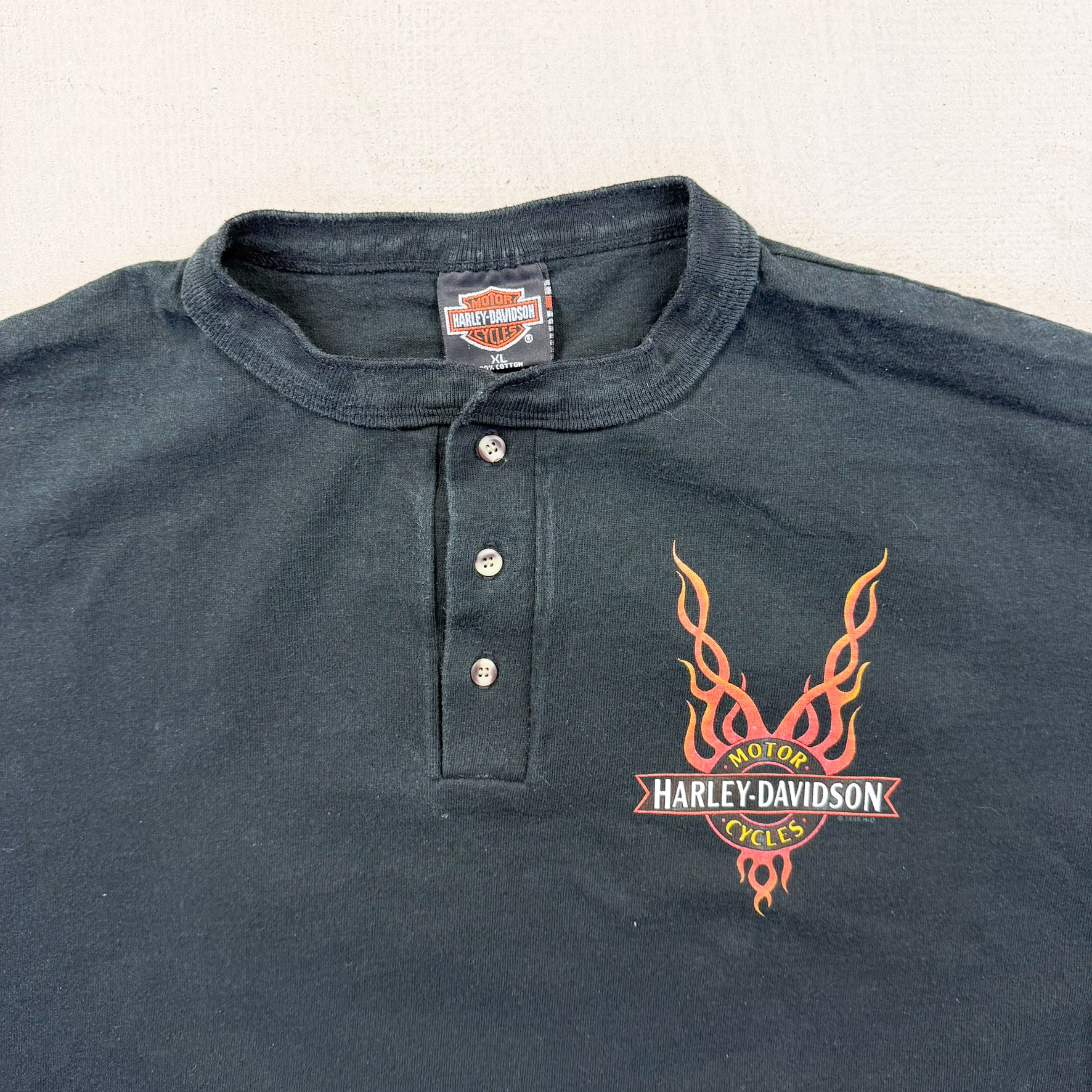 F- Vintage '98 Harley Davidson Kansas City Made In USA Single Stitch Henley Tee