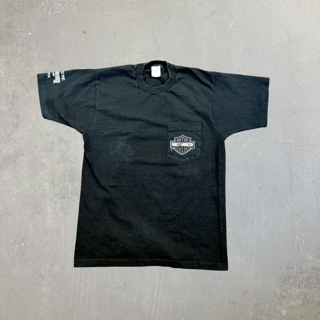 F- Vintage Harley Davidson Ft Wayne Indiana Made In USA Single Stitch Pocket Tee