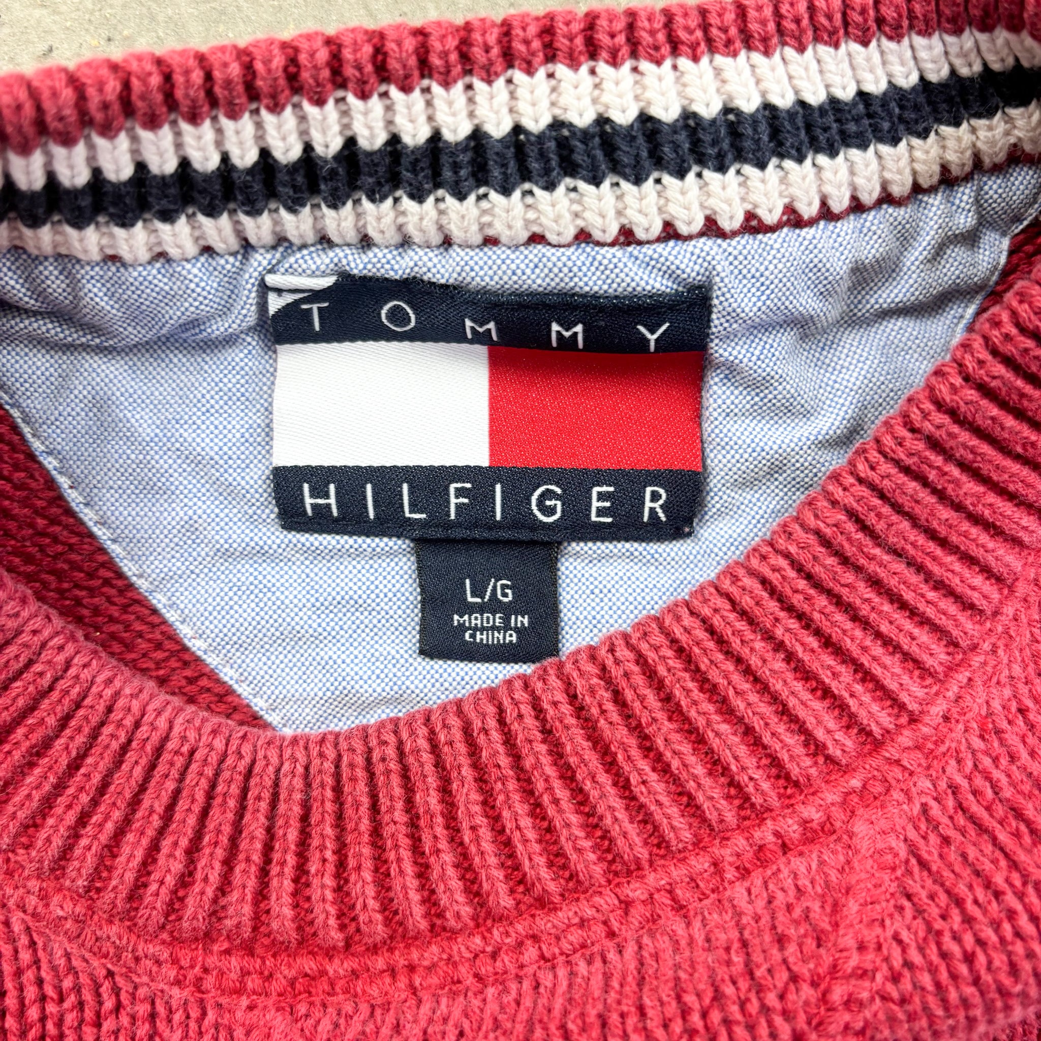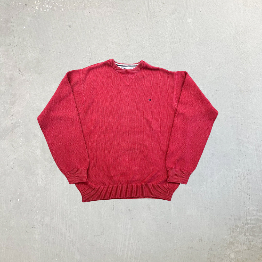 F- Vintage Tommy Hilfiger Red Plain Knit Sweater
