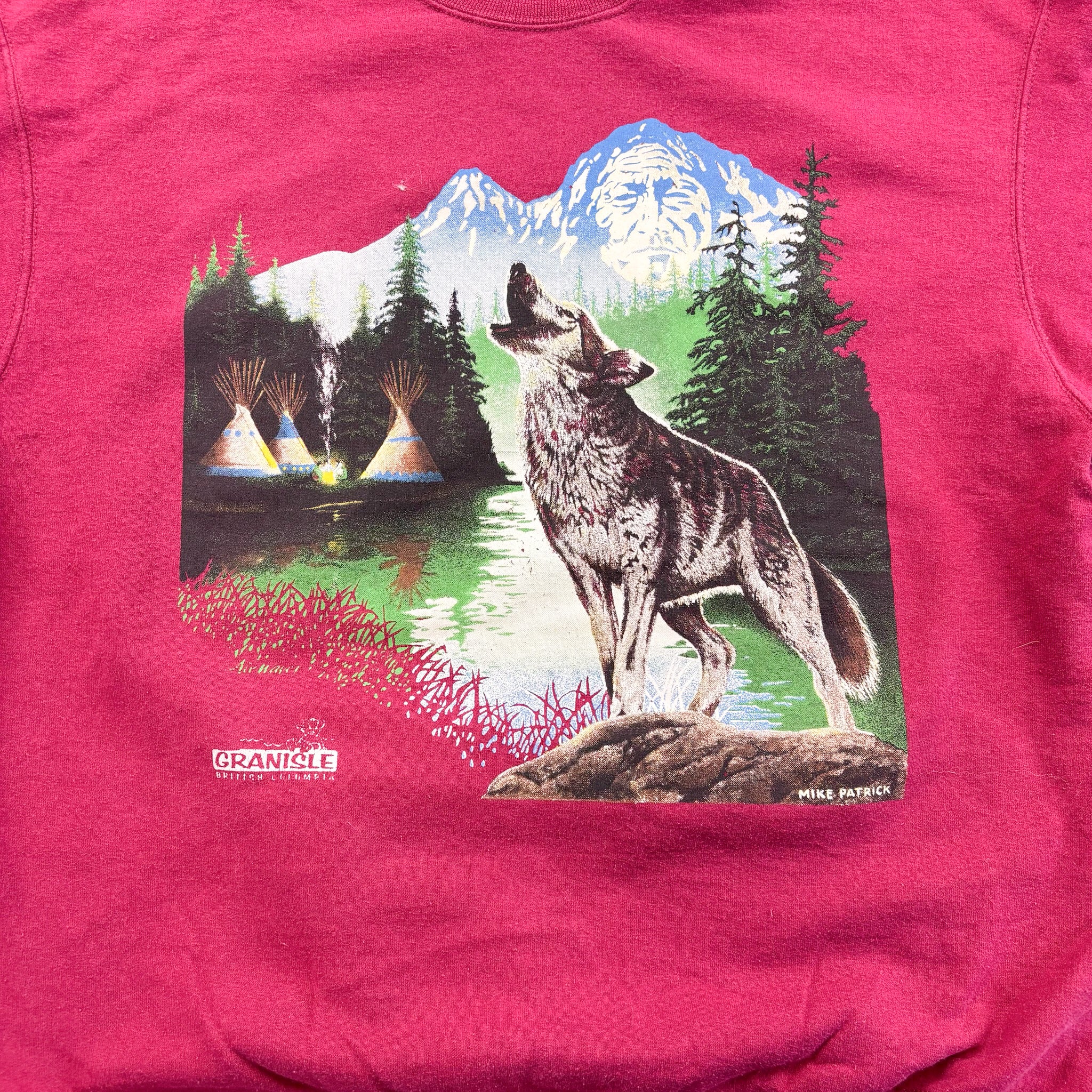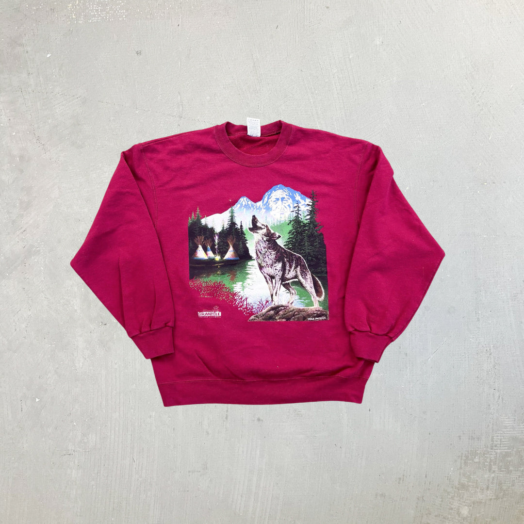 F- Vintage Wolf Howling & River Graphic Crewneck