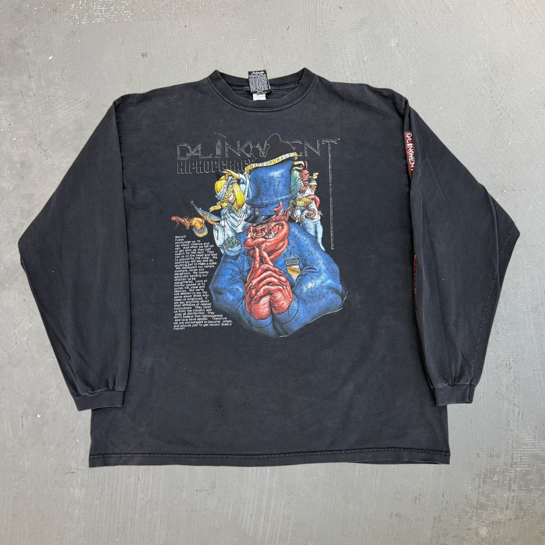 J- Vintage 90s Dalinkwent Hiphopcracy Graphic Long Sleeve Tee - XL