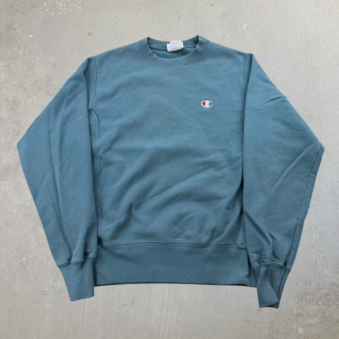 J- Vintage Champion Reverse Weave Embroidered Logo Teal Crewneck - S