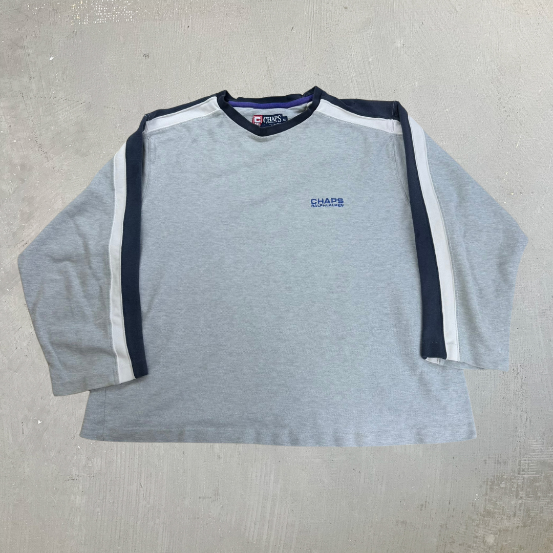 J- Vintage Chaps Ralph Lauren Embroidered Text Cropped Long Sleeve Tee - M