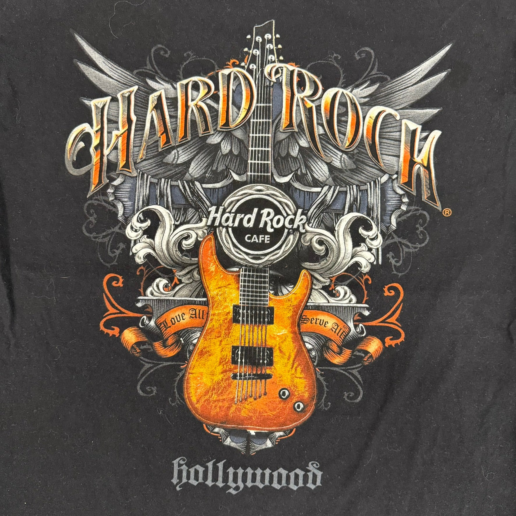 J- Vintage Hard Rock Cafe Hollywood Guitar & Text Graphic Tee - L