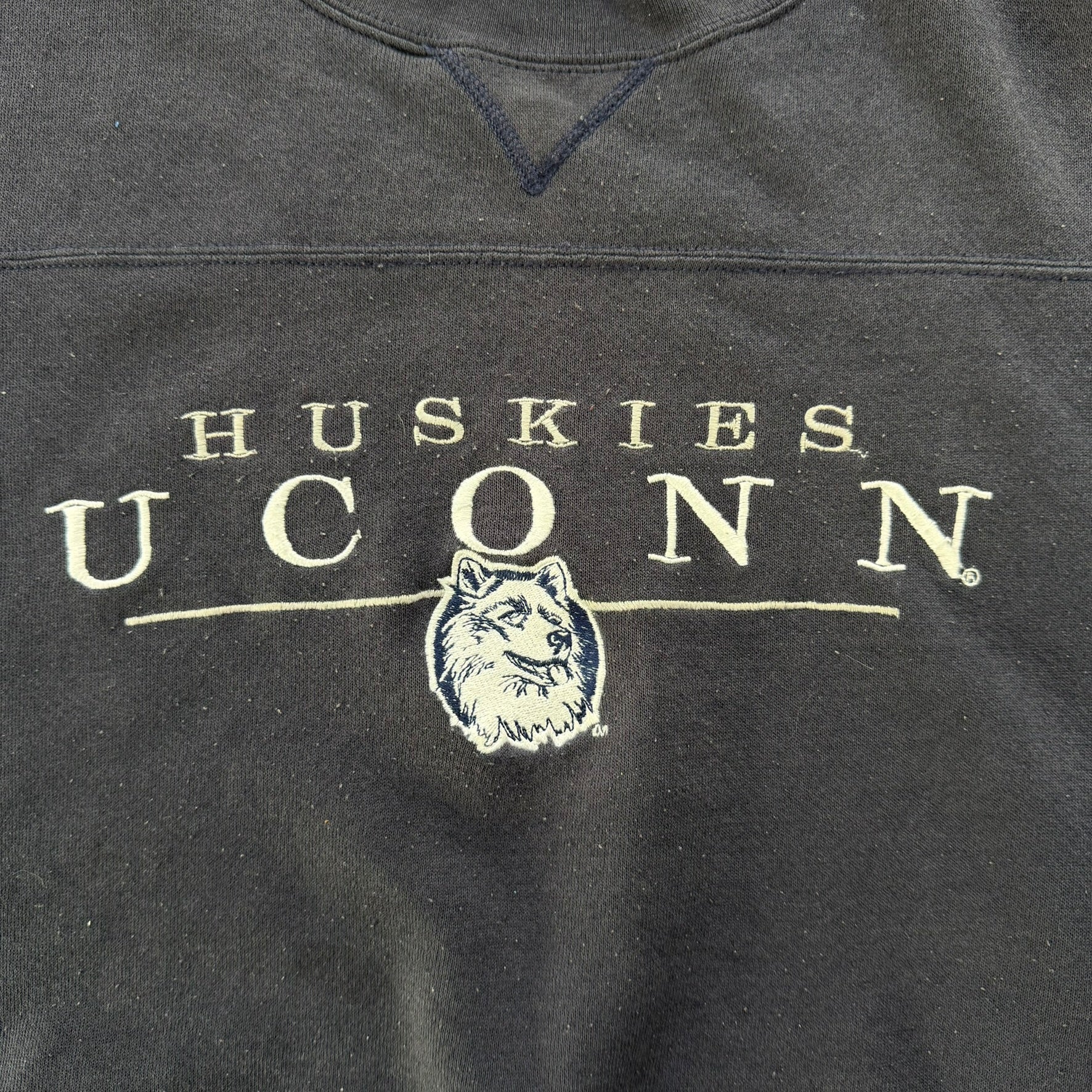 J- Vintage Uconn Huskies Embroidered Text & Logo Lee Crewneck - L