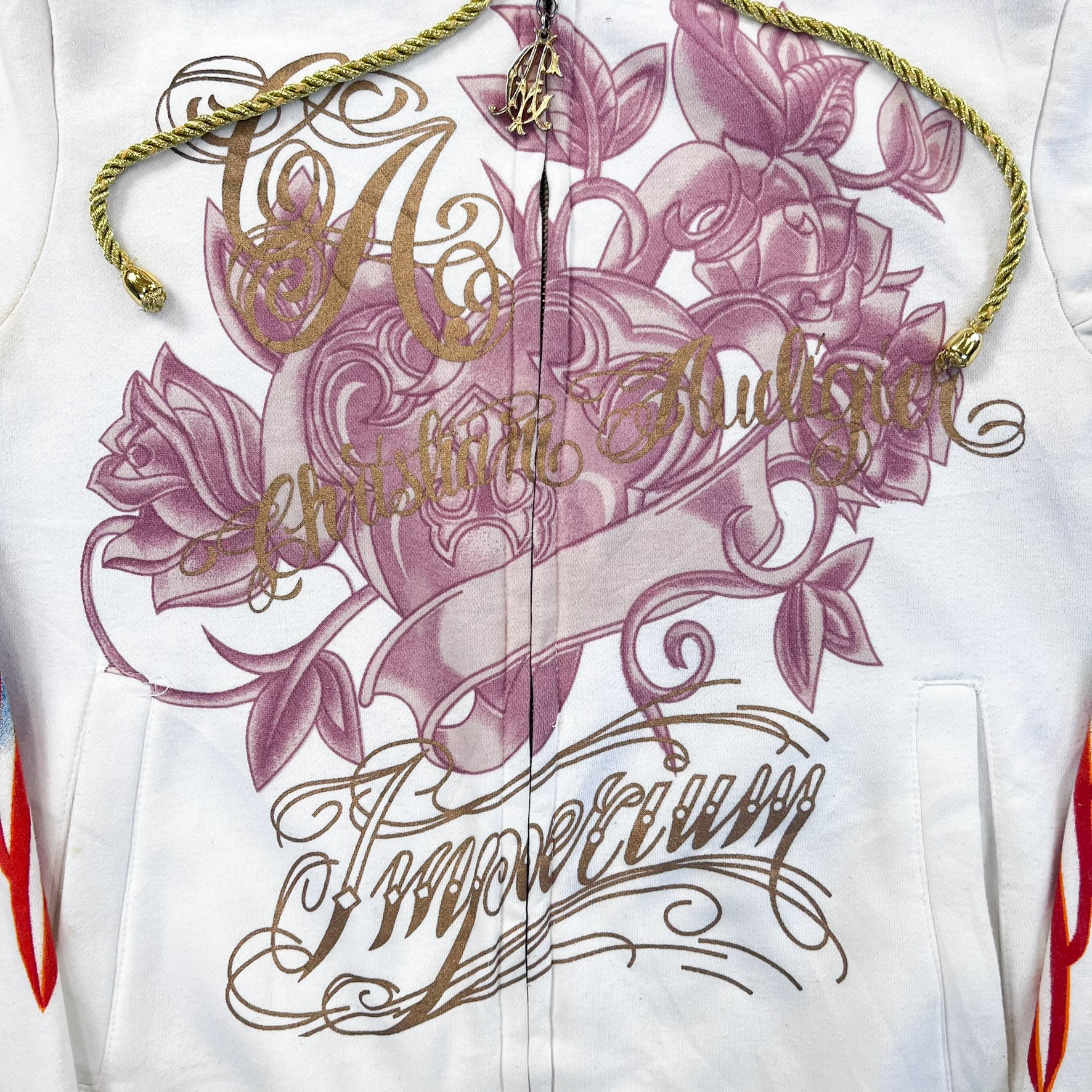 F- Vintage Christian Audigier Roses Tattoo Graphic Zip Up Hoodie