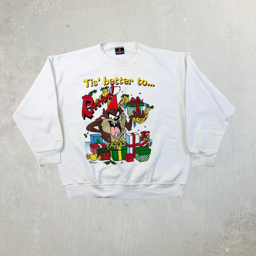 F- Vintage '95 Looney Tunes Tasmanian Devil Christmas Graphic Signal Sport Crewneck