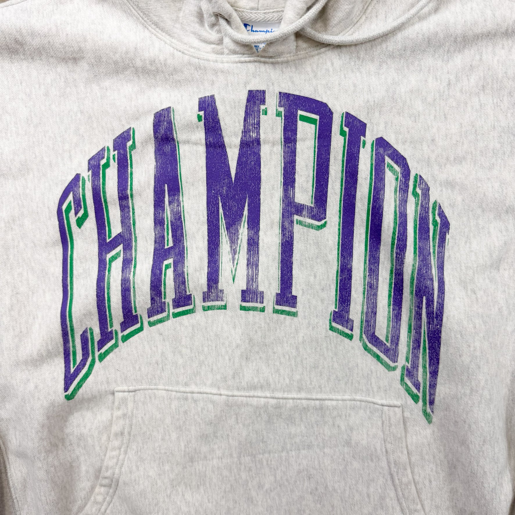 F- Vintage Champion Reverse Weave Curved Text Hoodie
