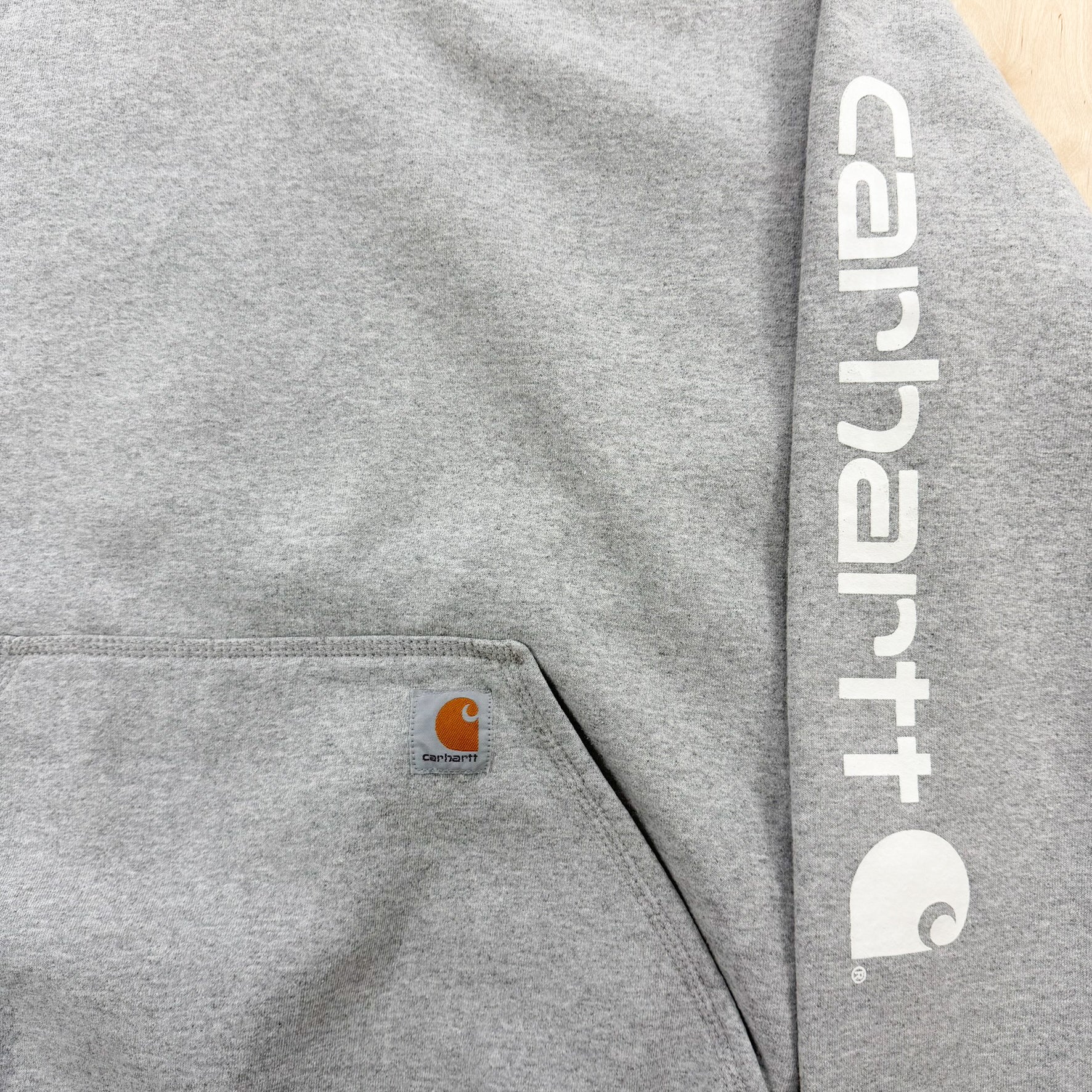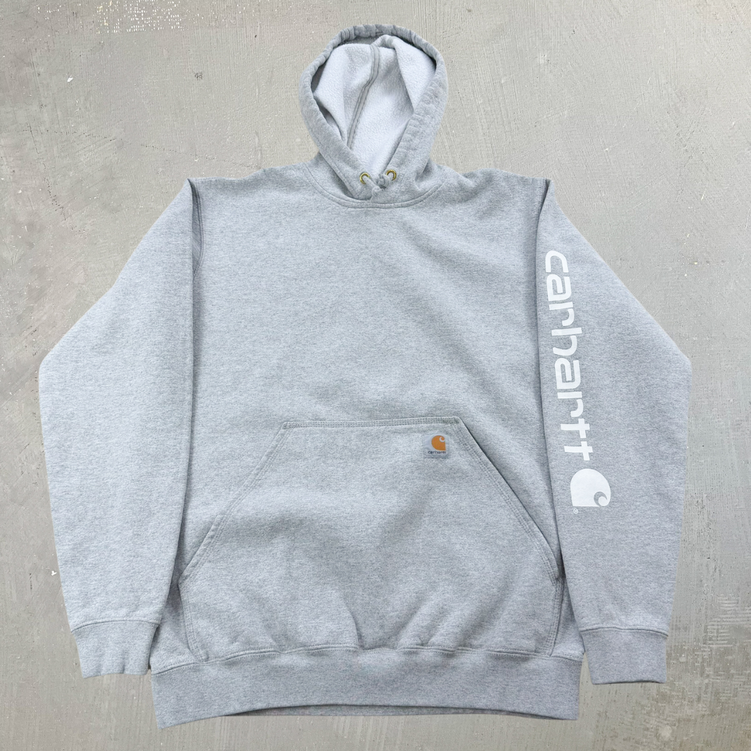 J- Carhartt Text Sleeve Grey Hoodie - M