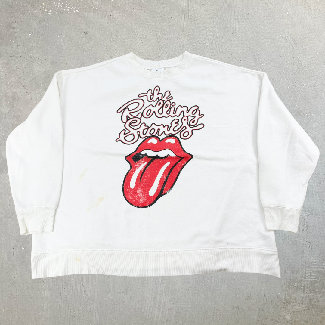 J- Rolling Stones Text & Logo White Reprint Graphic Crewneck - XL