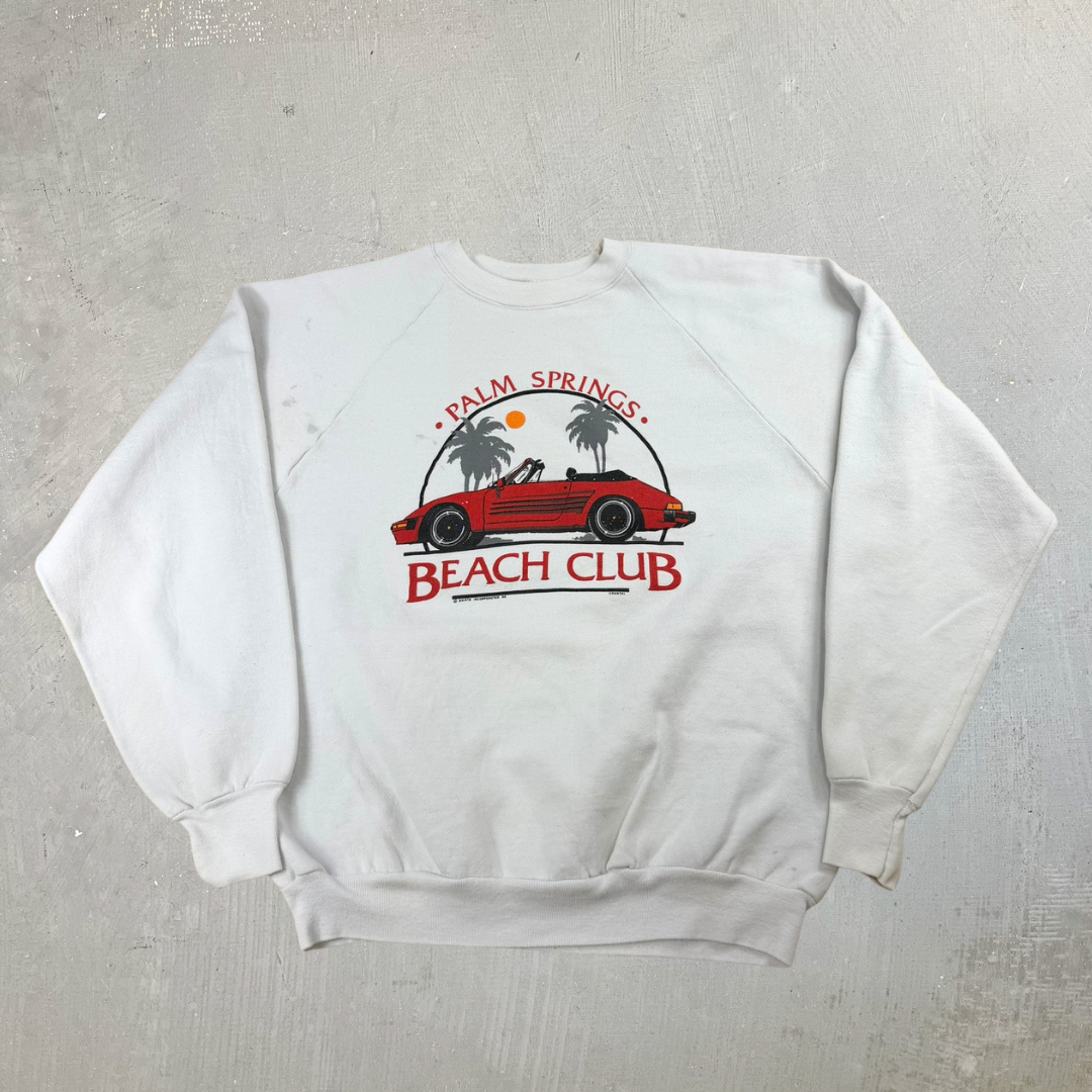 J- Vintage '86 Palm Spring Beach Club Car Graphic Made In USA Crewneck - XL