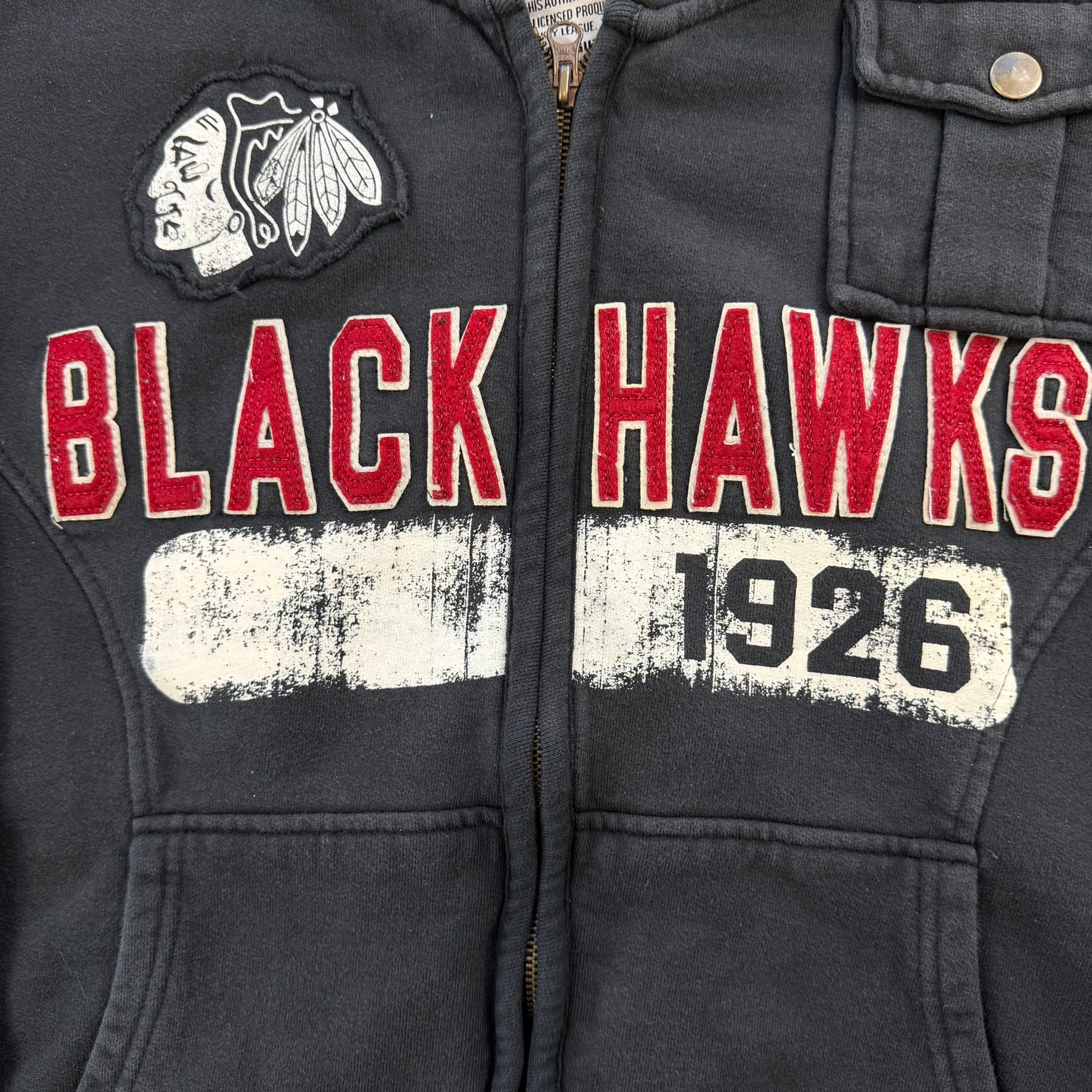 J- Vintage Chicago Blackhawks NHL Old Time Hockey Embroidered Logo Zip Up Hoodie - L