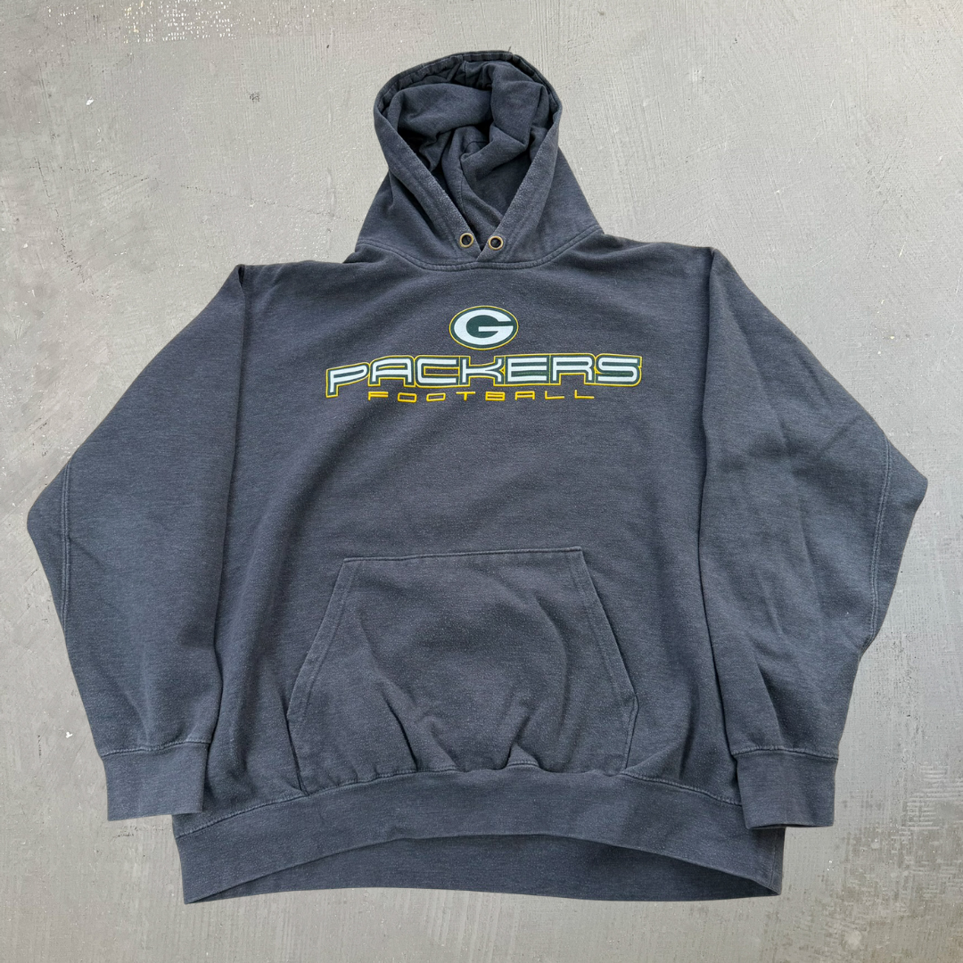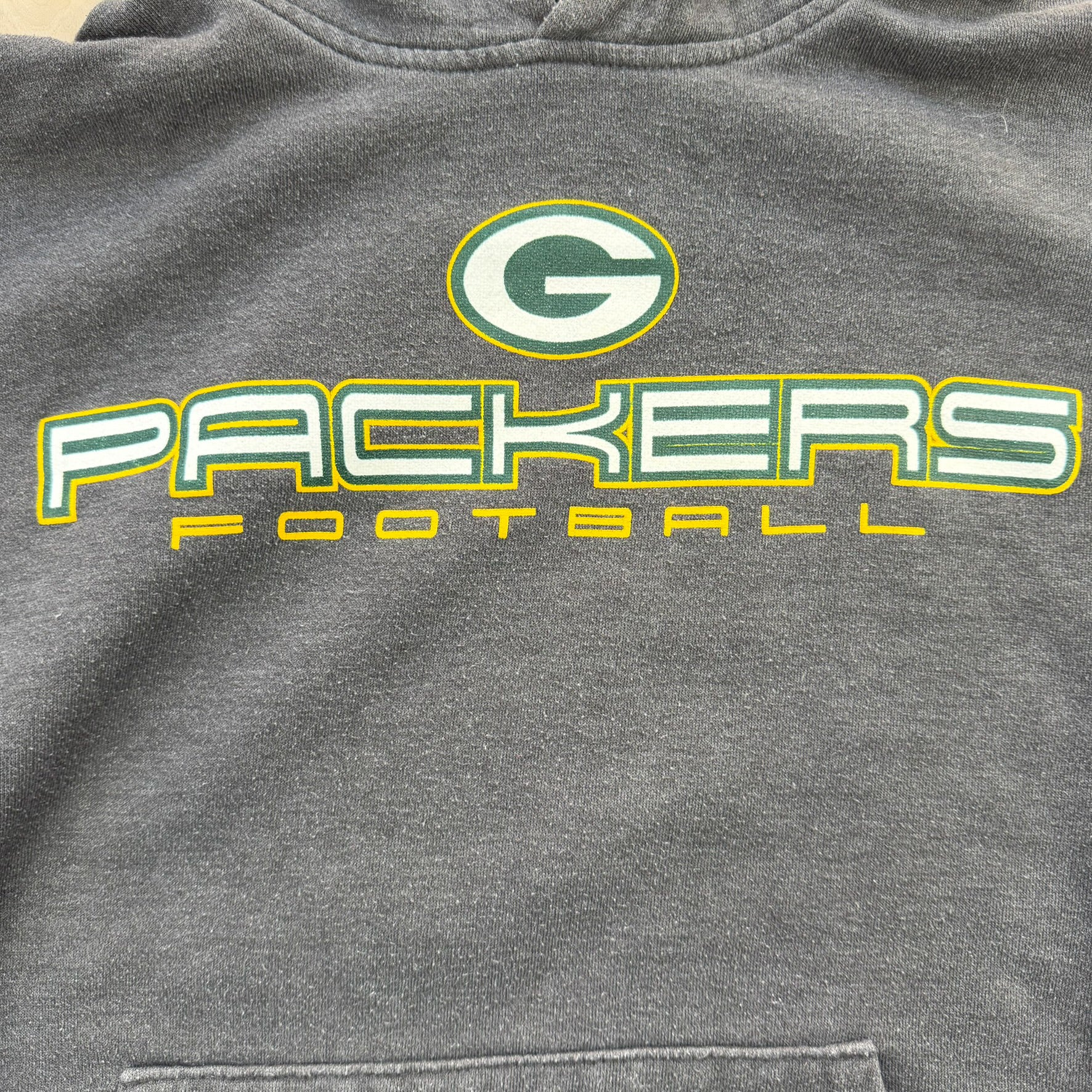 J- Vintage Green Bay Packers NFL Text & Logo Hoodie - L