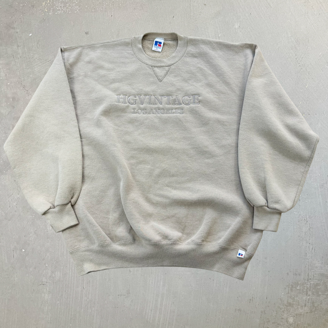 J- Vintage HG Vintage Los Angeles Embroidered Text Tan Russell Made In USA Crewneck - XL