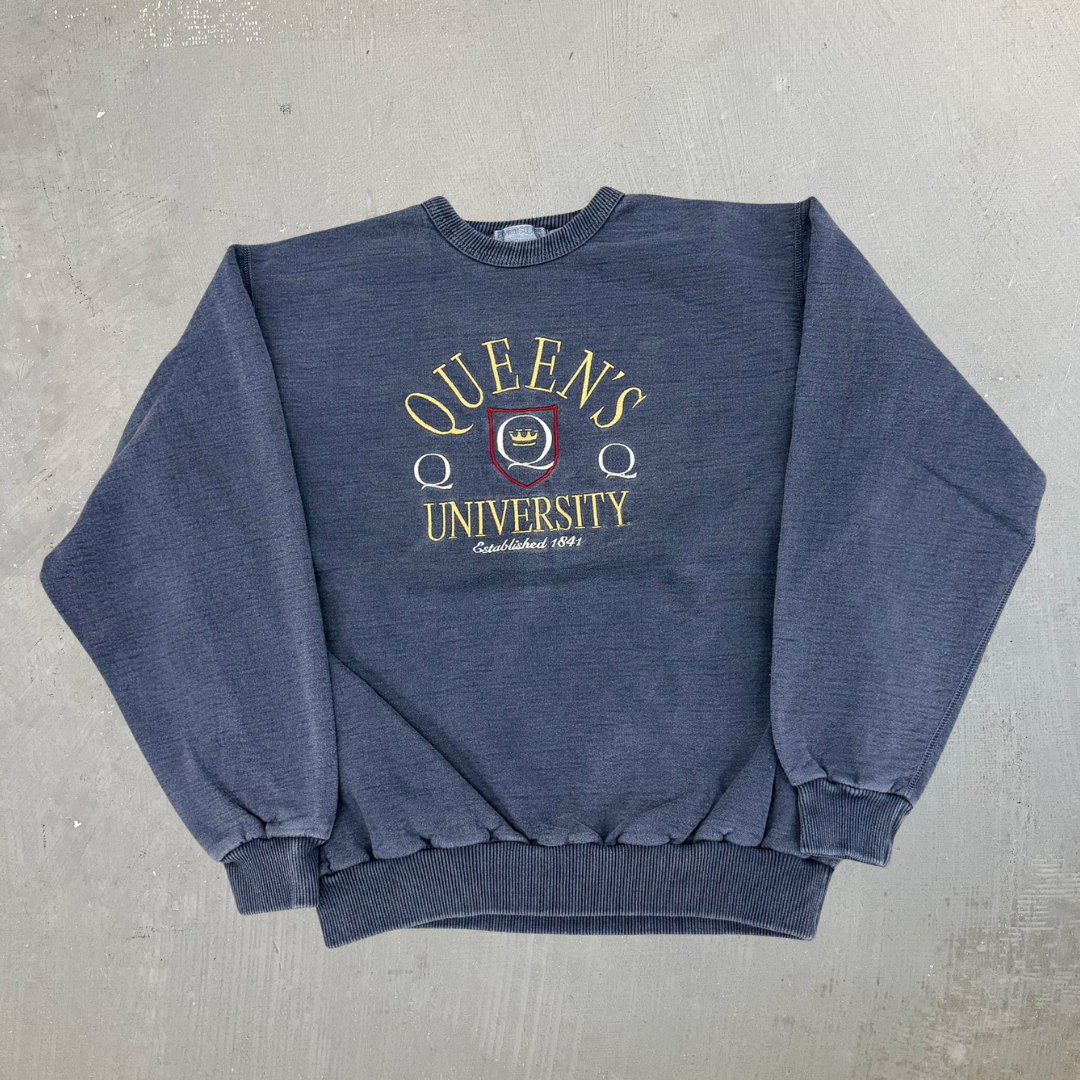 J- Vintage Queen's University Embroidered Text Graphic Crewneck - M