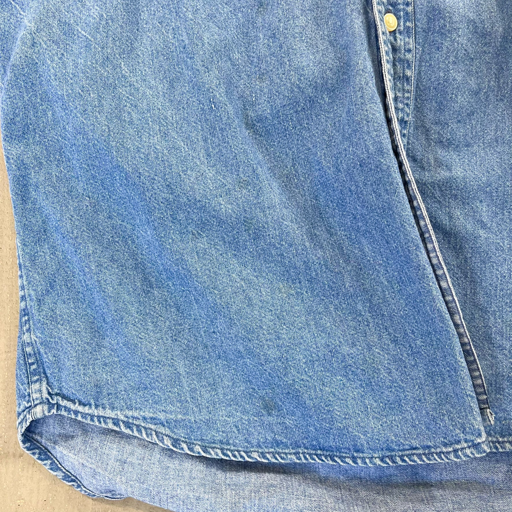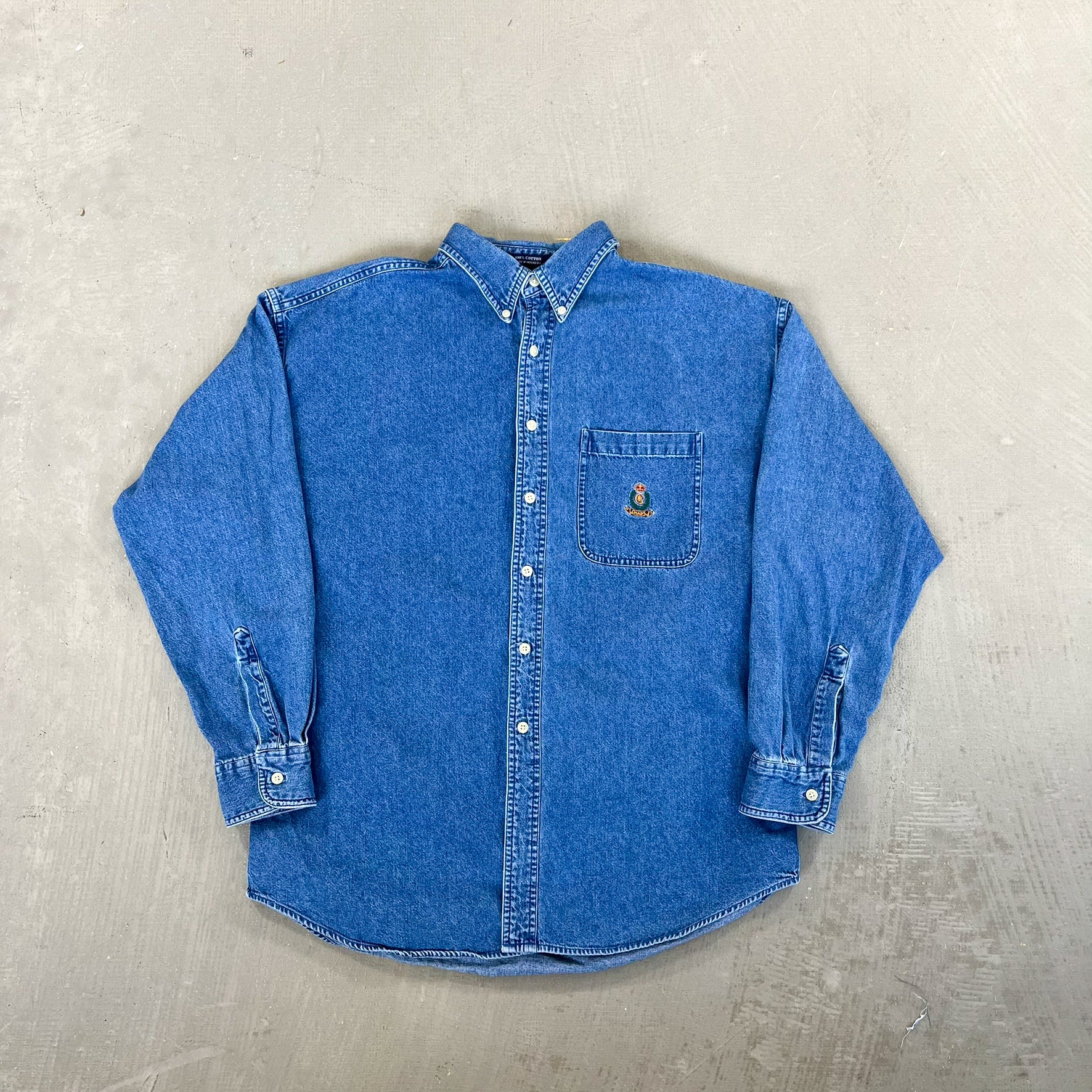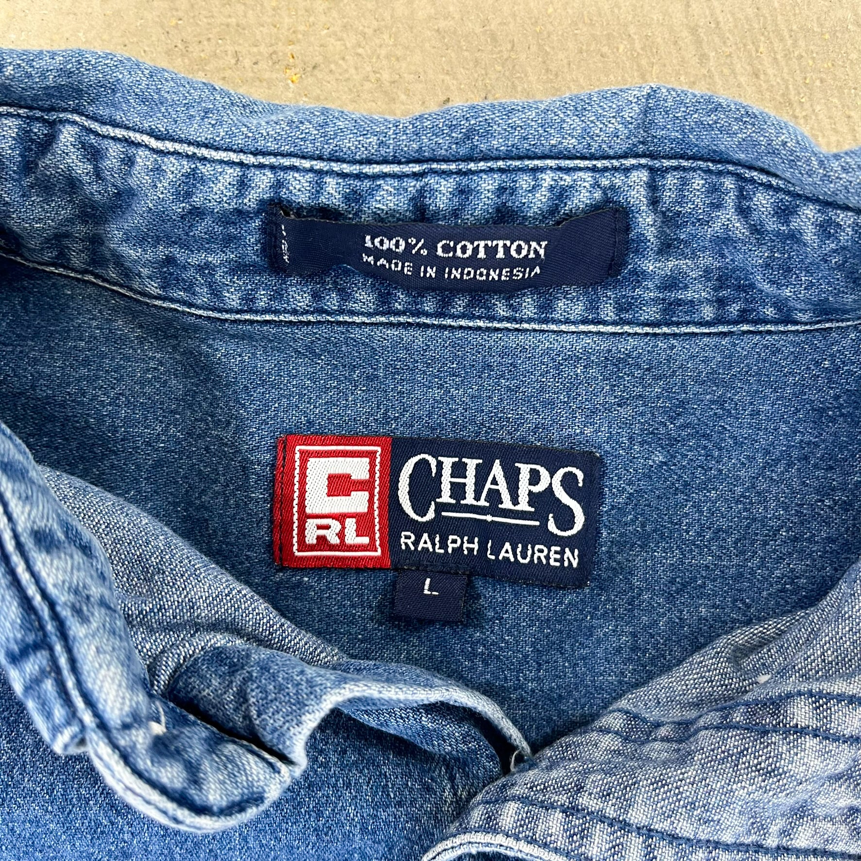 F- Vintage Chaps Ralph Lauren Emb Crest Denim Button Down Shirt