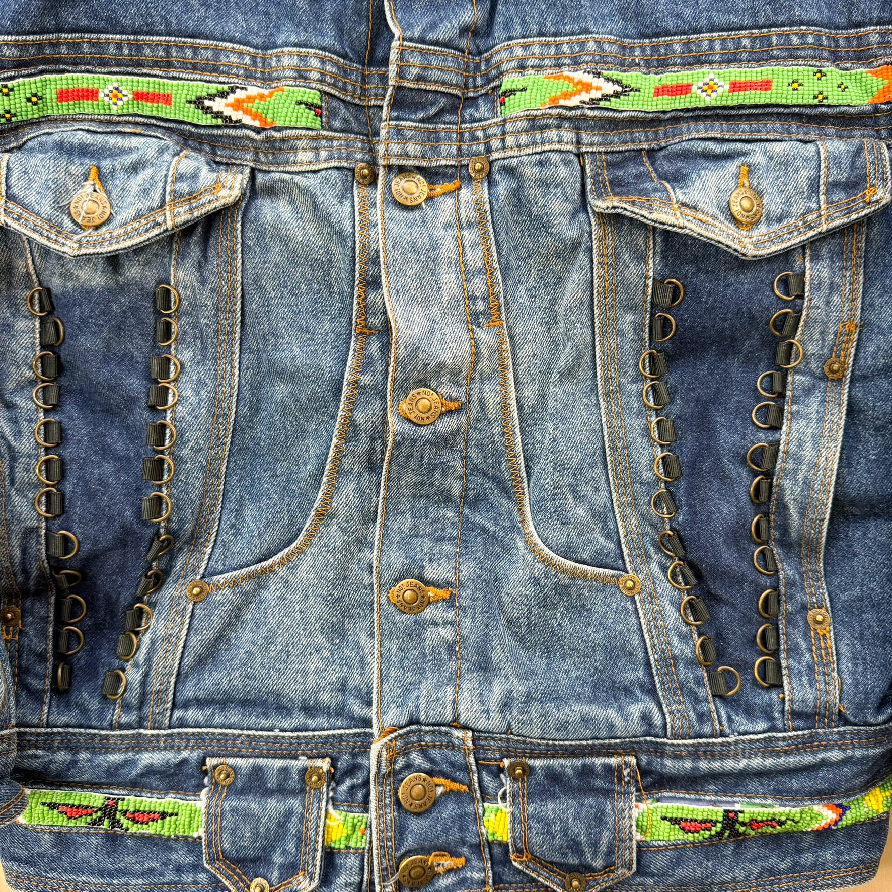 J- Vintage 80's No Jeans! Beads Detailing Denim Jacket - M