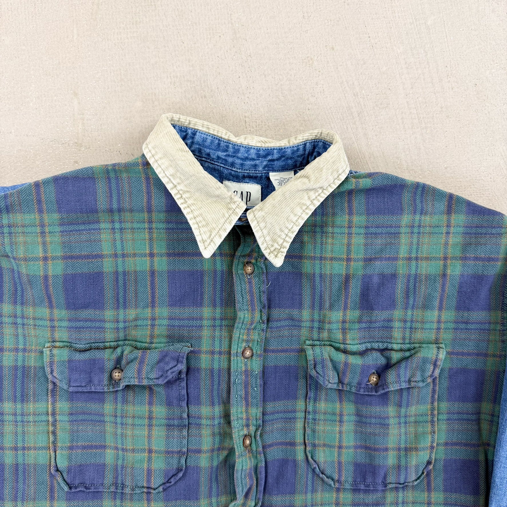 F- Vintage Gap Plaid Denim Button Down Shirt