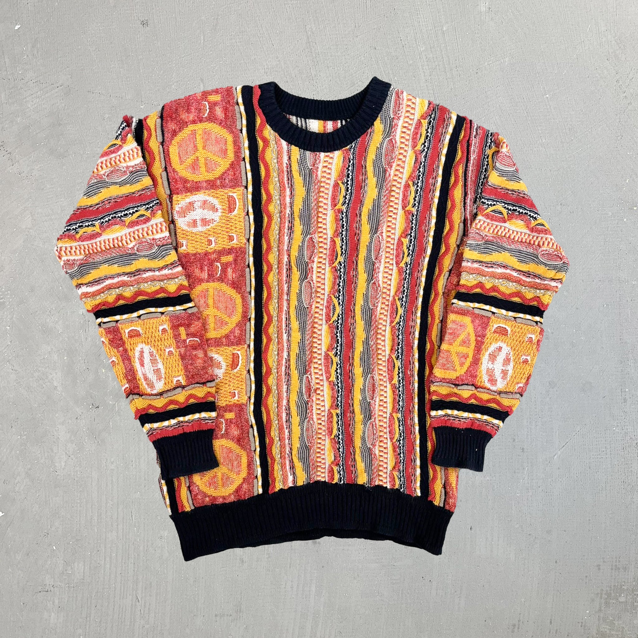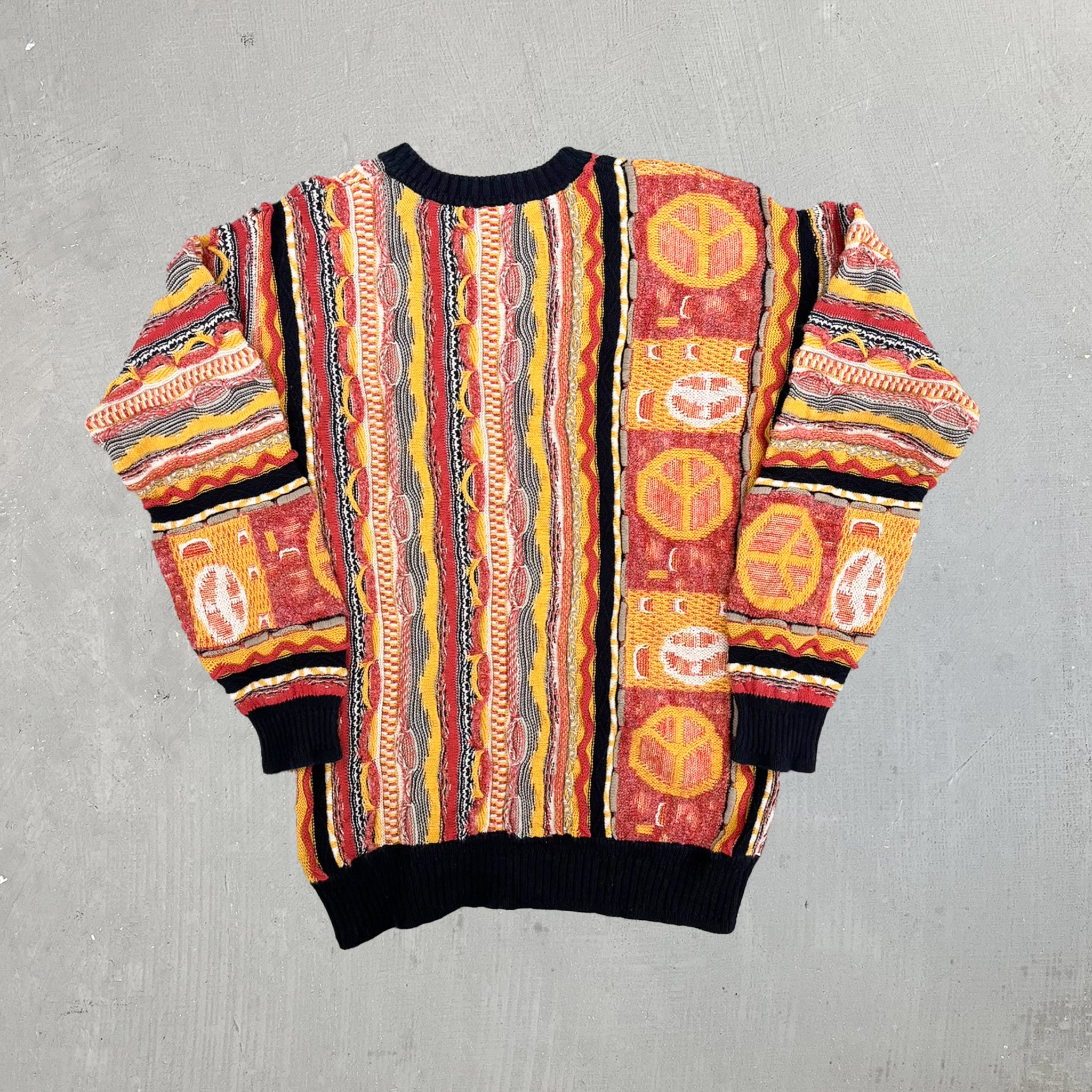 F- Vintage Peace Sign Coogi Style Woven Knit Sweaters