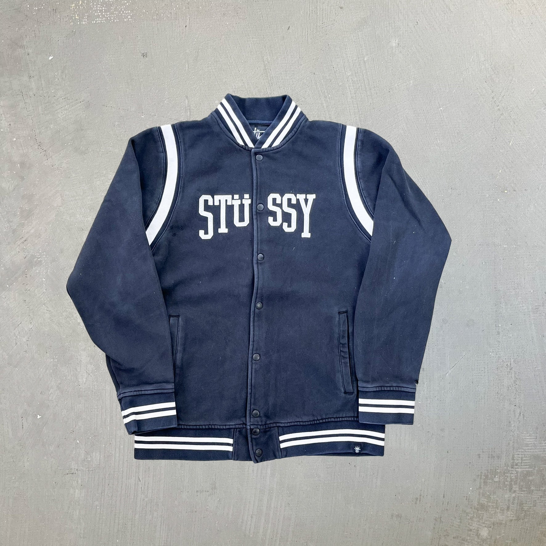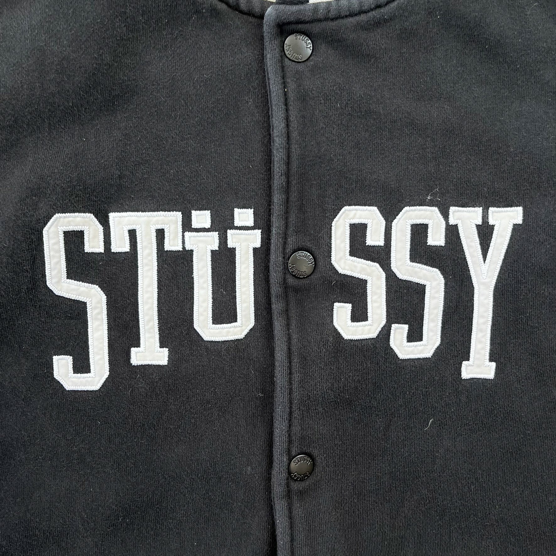 F- Vintage Stussy Embroidered Text Button Bomber Jacket
