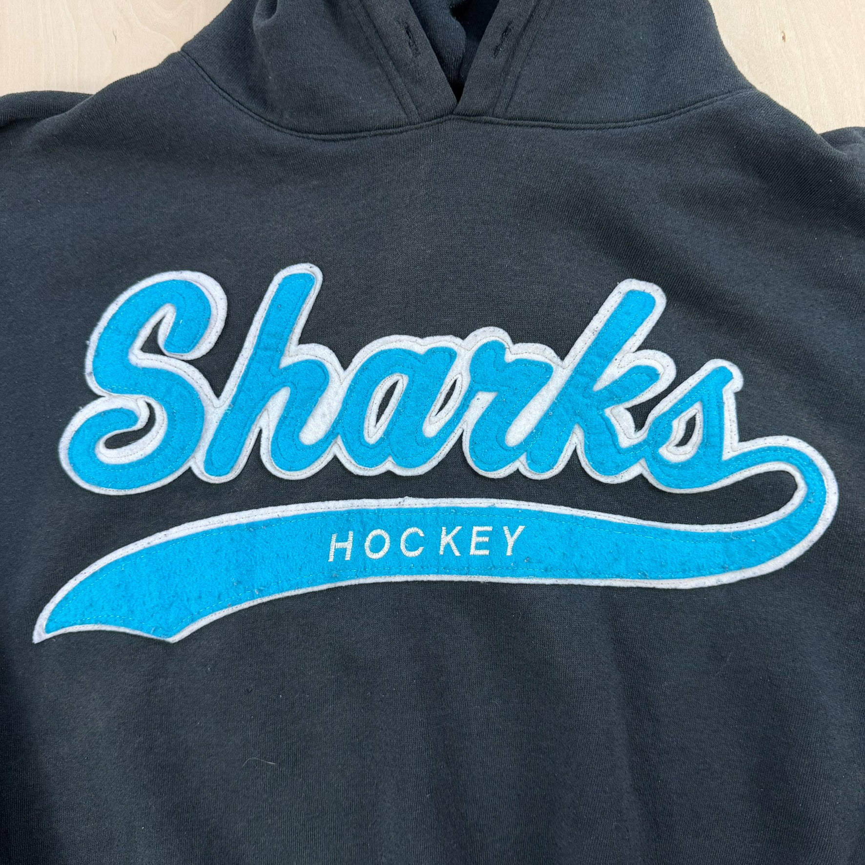 J- Vintage San Jose Sharks NHL Starter Embroidered Chenille Text Hoodie - L