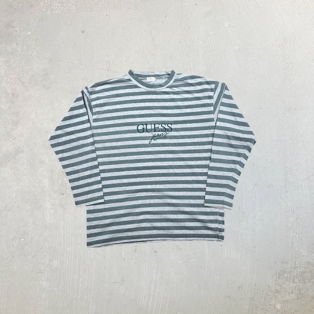 F- Vintage Guess Jeans Embroidered Text Long Sleeve Tee