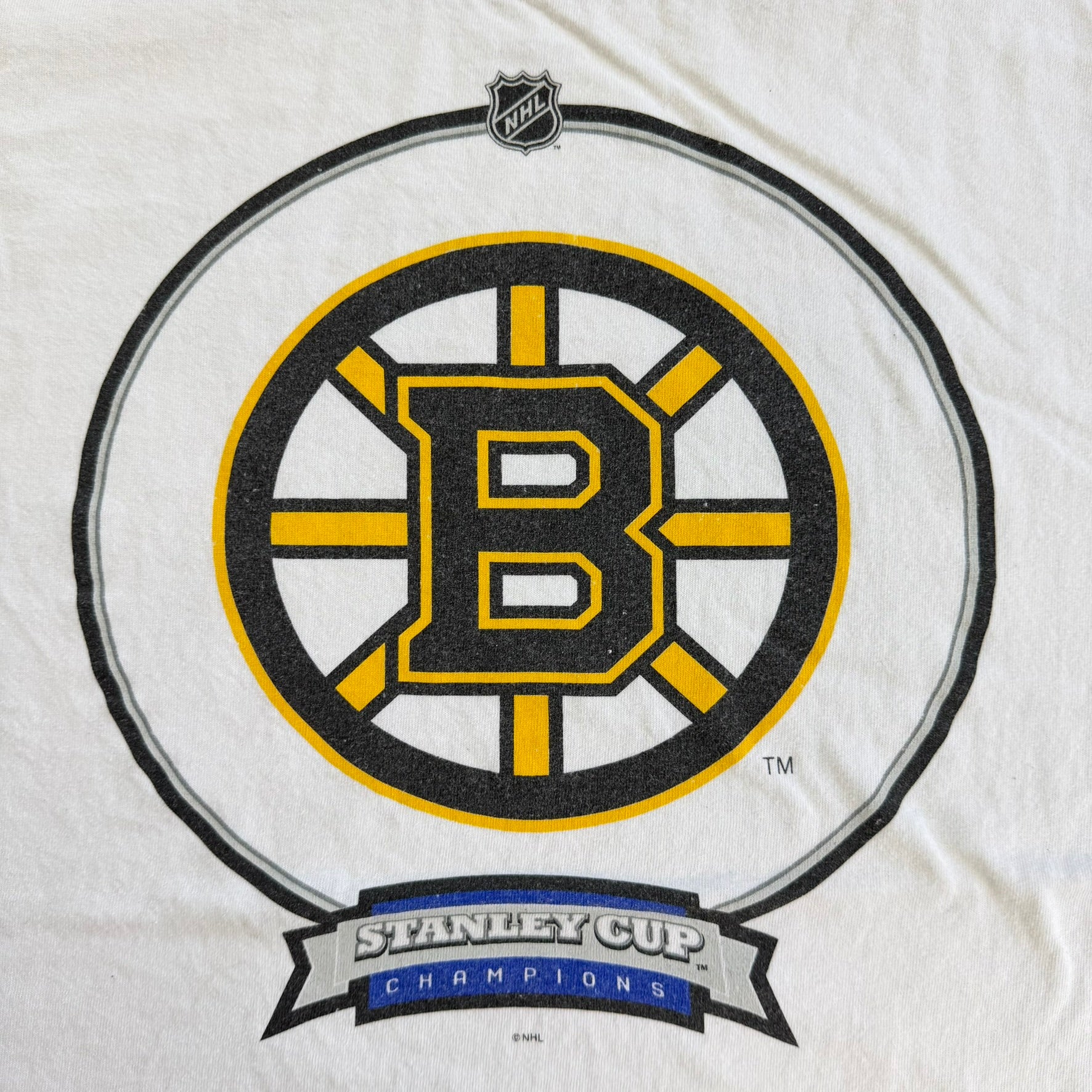 J- Vintage Boston Bruins NHL Bud Light Stanley Cup Champion Text Tee - L
