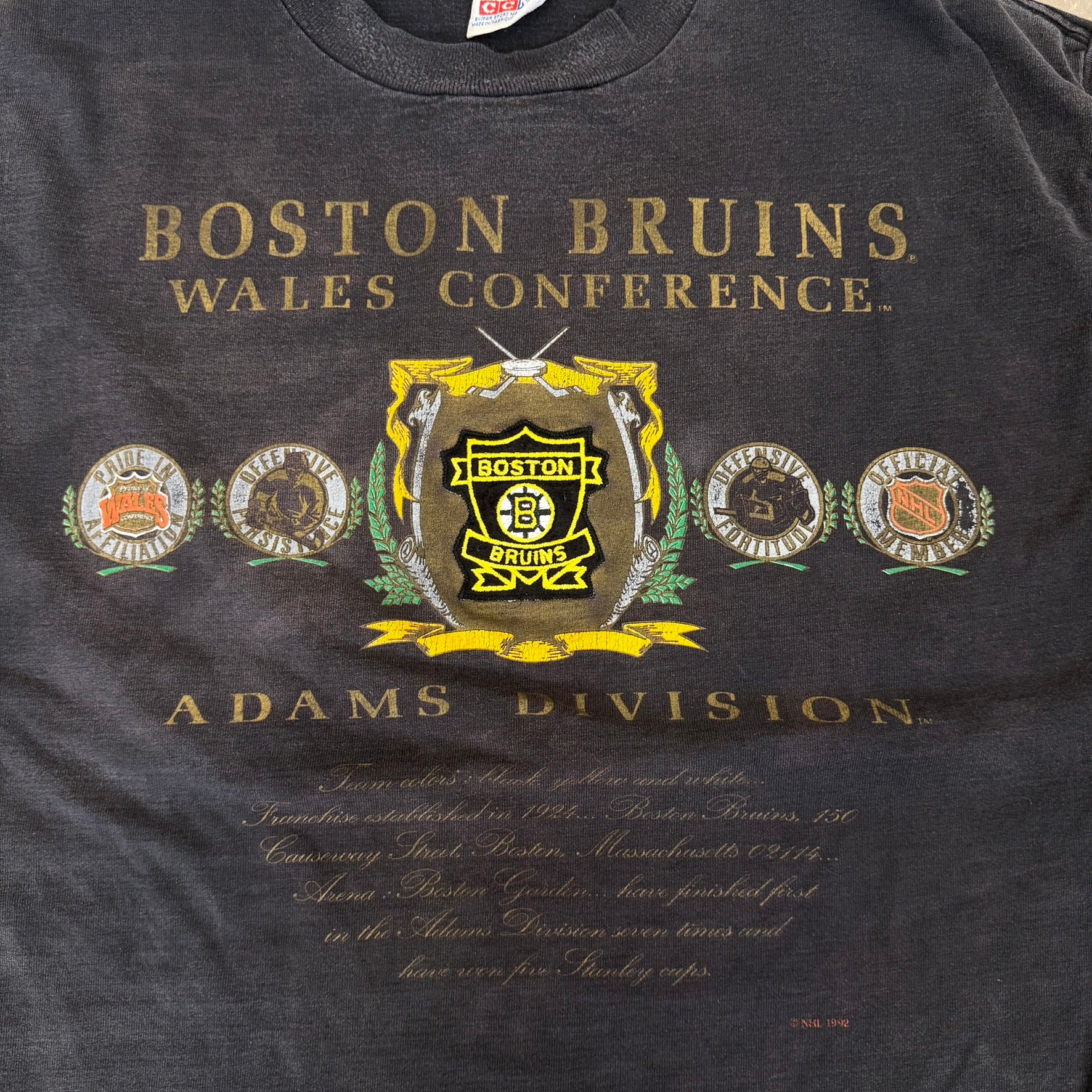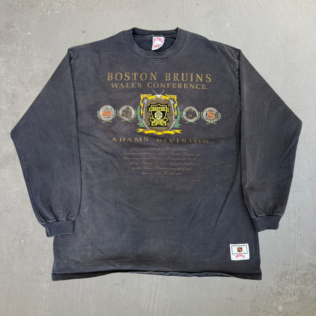 J- Vintage Boston Bruins NHL CCM Logo & Text Long Sleeve Tee - XL