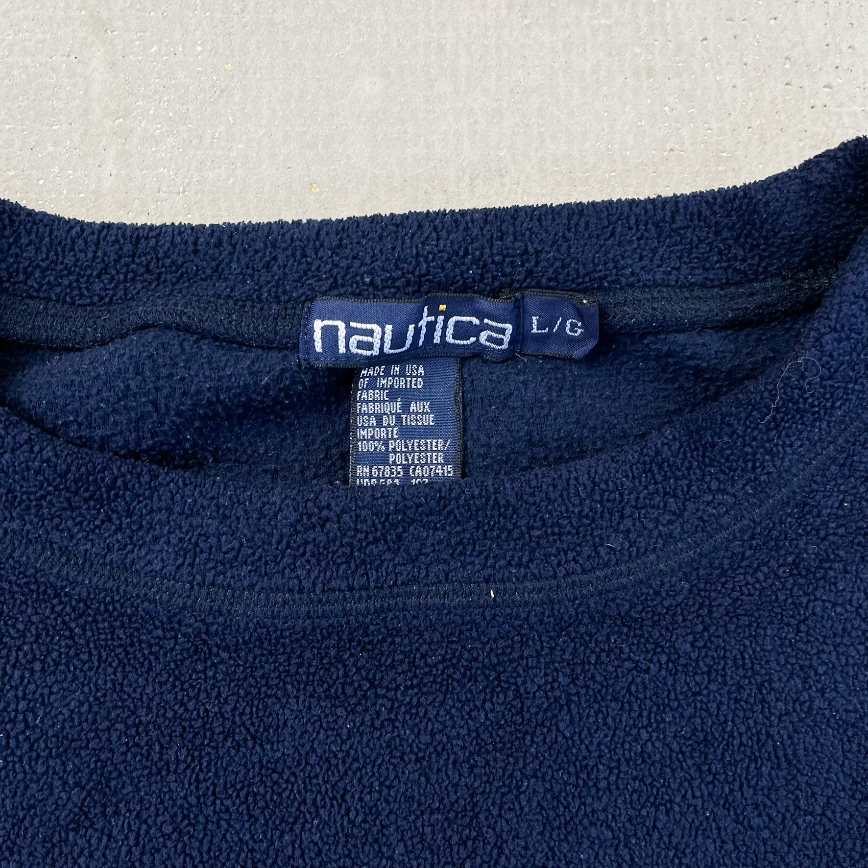 F- Nautica Embroidered Text & Logo Polar Fleece Crewneck