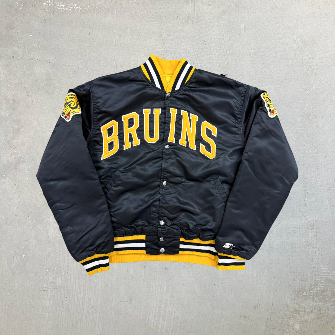 F- Vintage Boston Bruins NHL Starter Satin Bomber Jacket
