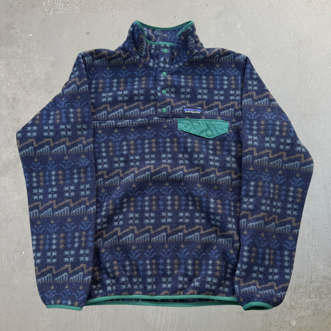 J- Patagonia Synchilla Navy/Green Patterned Polar Fleece - S