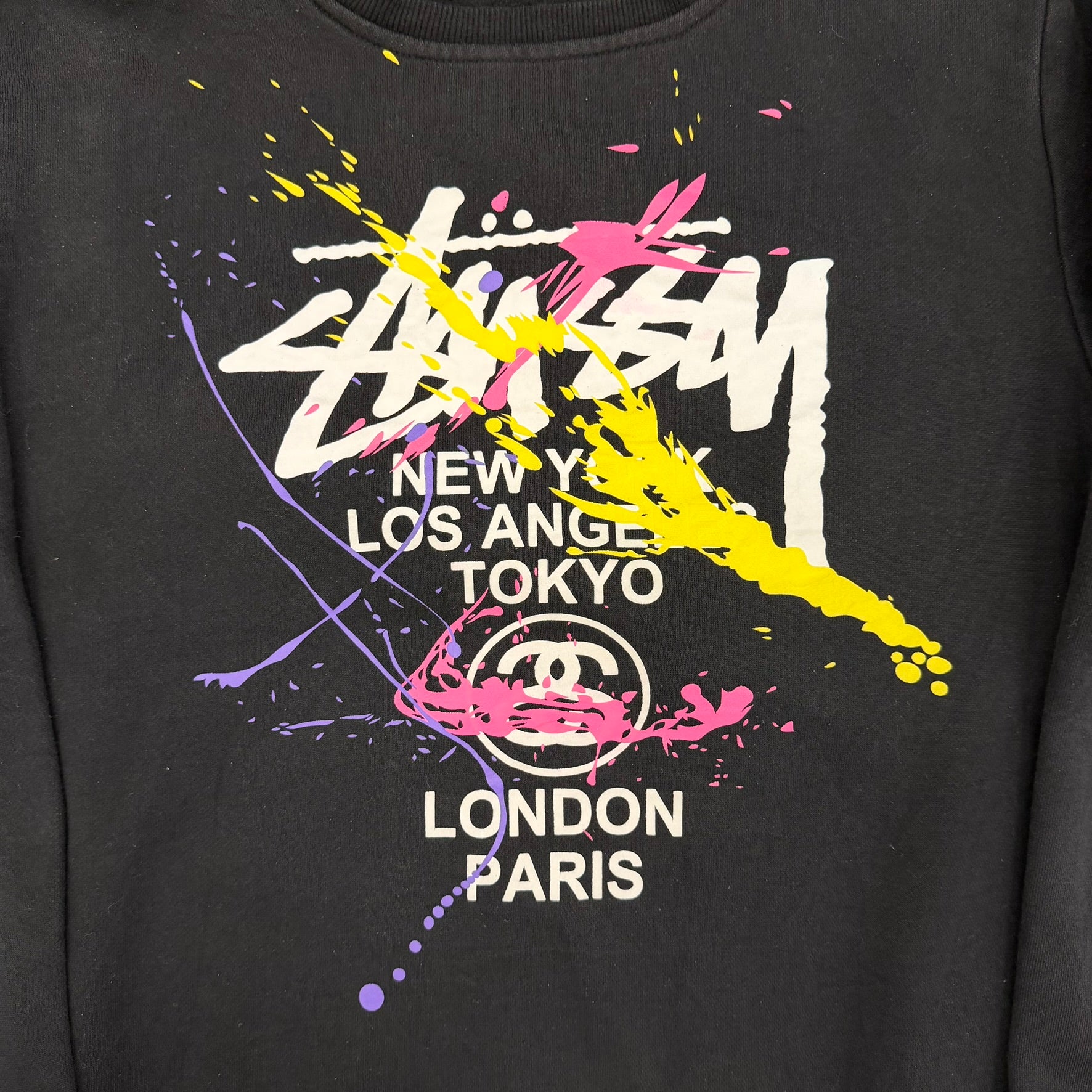 J- Stussy City Text & Paint Splatter Graphic Crewneck - M