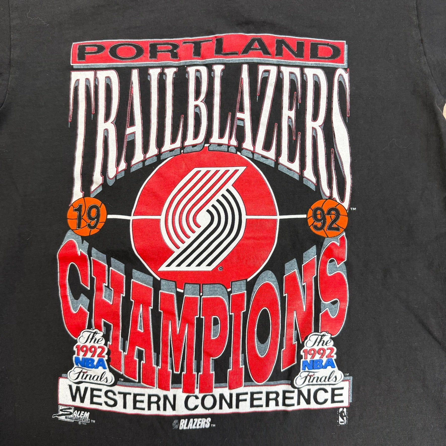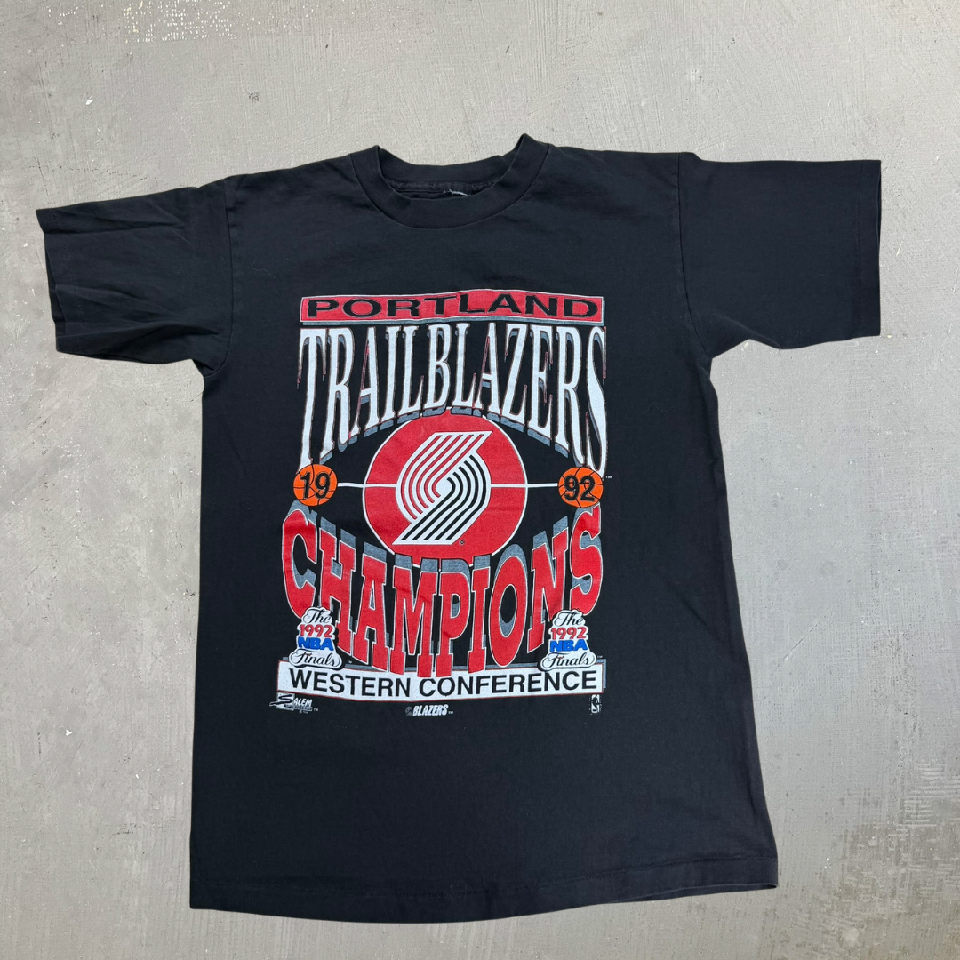 J- Vintage '92 Portland Trailblazer Conference Champions NBA Graphic Made In USA Single Stitch Tee - L