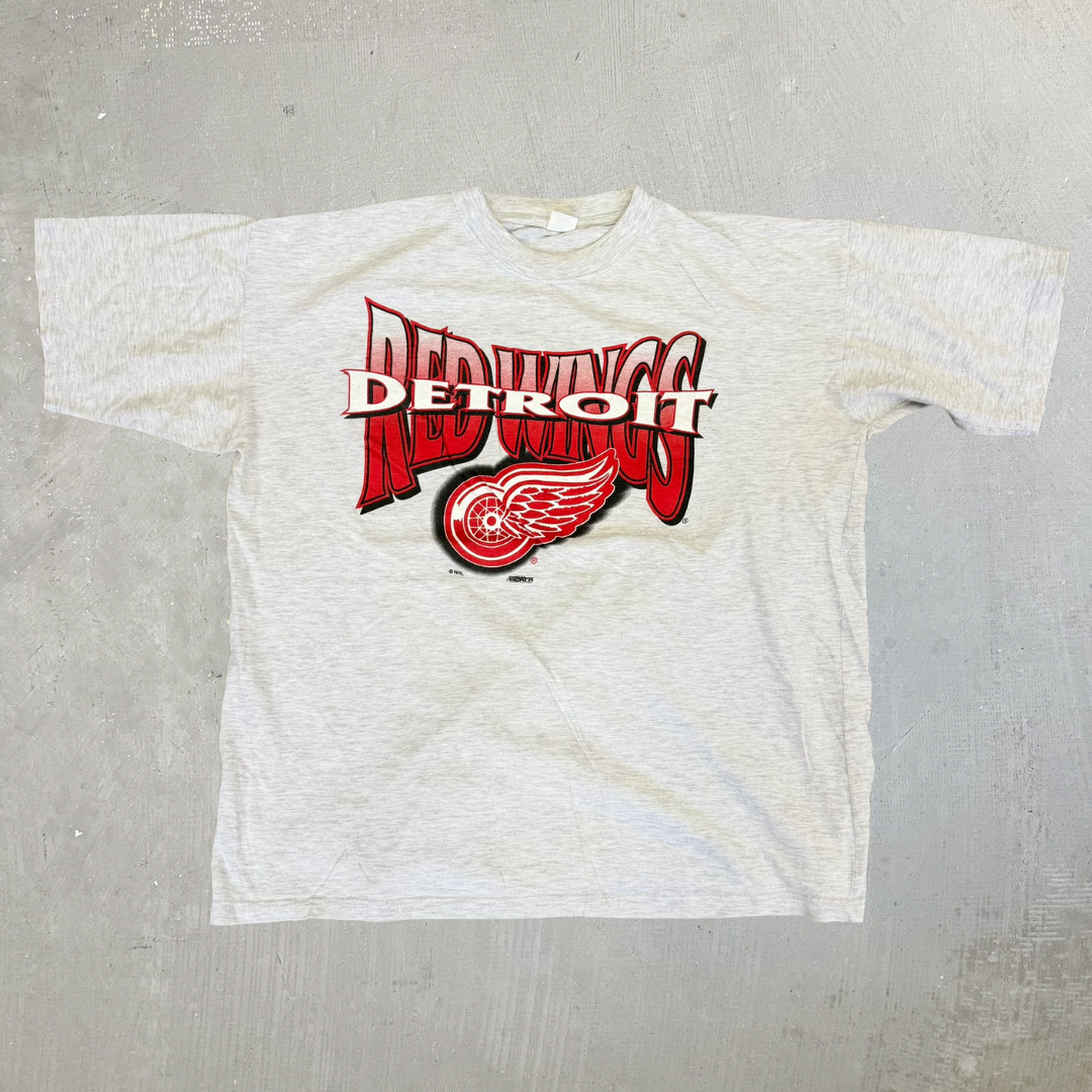 J- Vintage Detroit Red Wings NHL Logo & Text Graphic Tee - XL