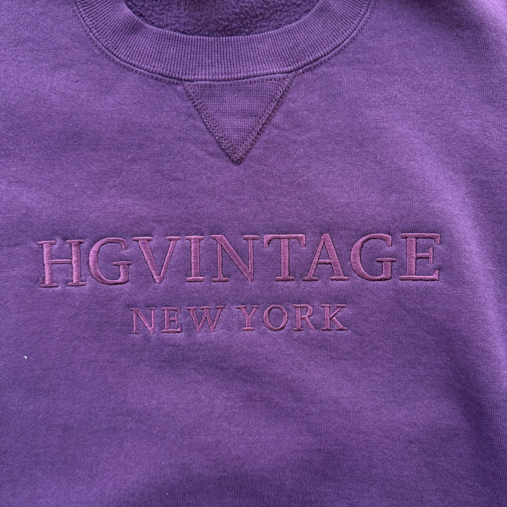 J- Vintage HG Vintage New York Embroidered Text Purple Russell Made In USA Crewneck - L