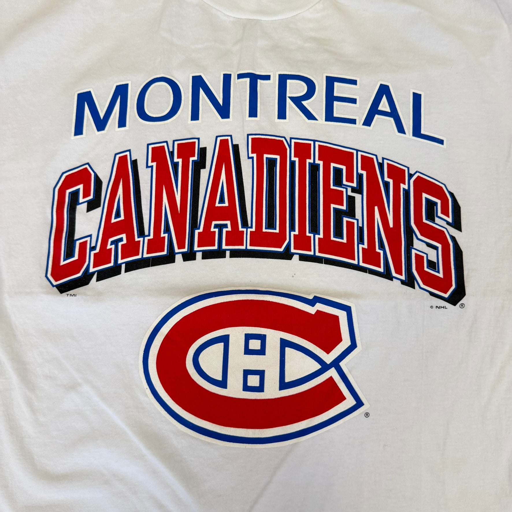 J- Vintage Montreal Canadiens NHL Logo & Text Graphic Single Stitch Tee - XL