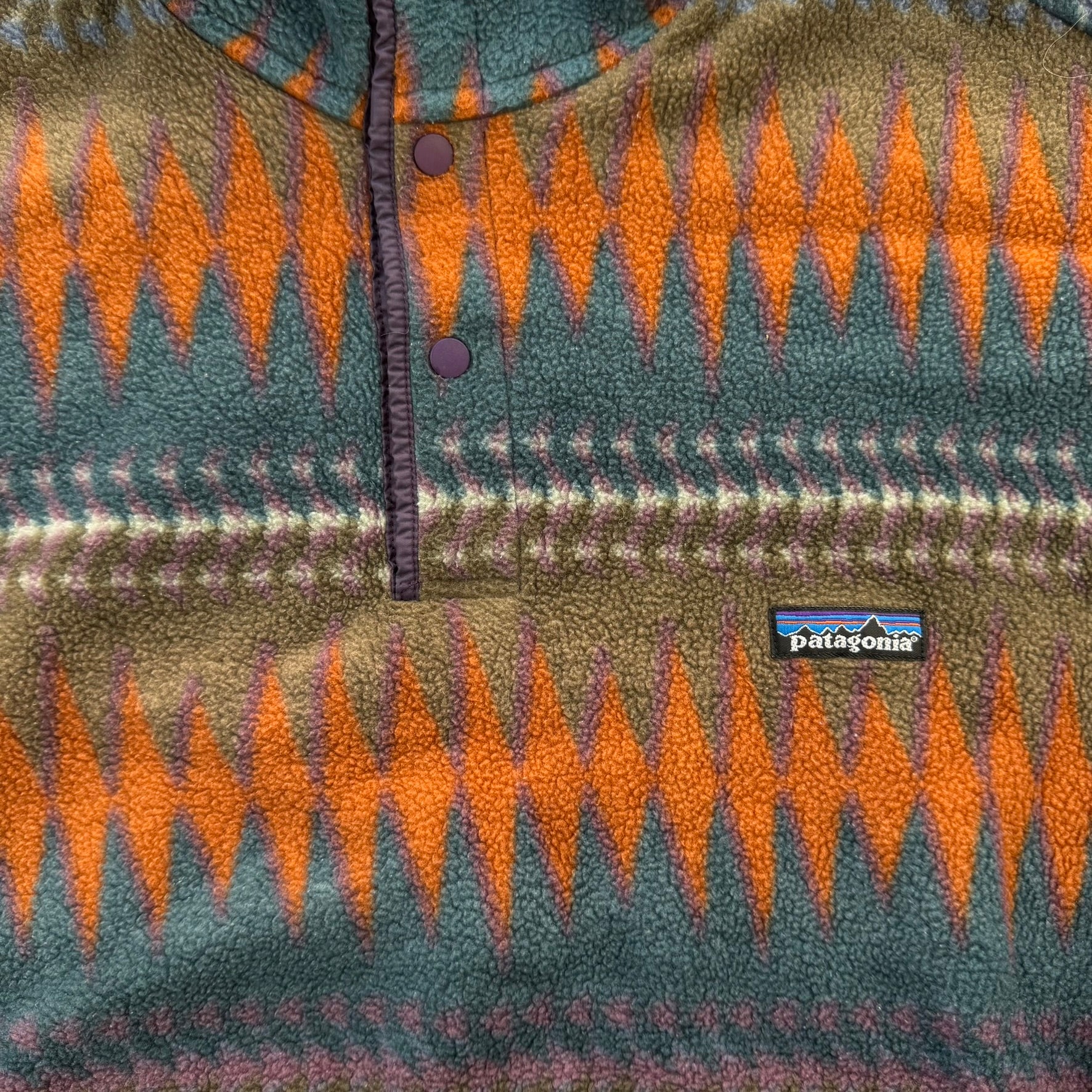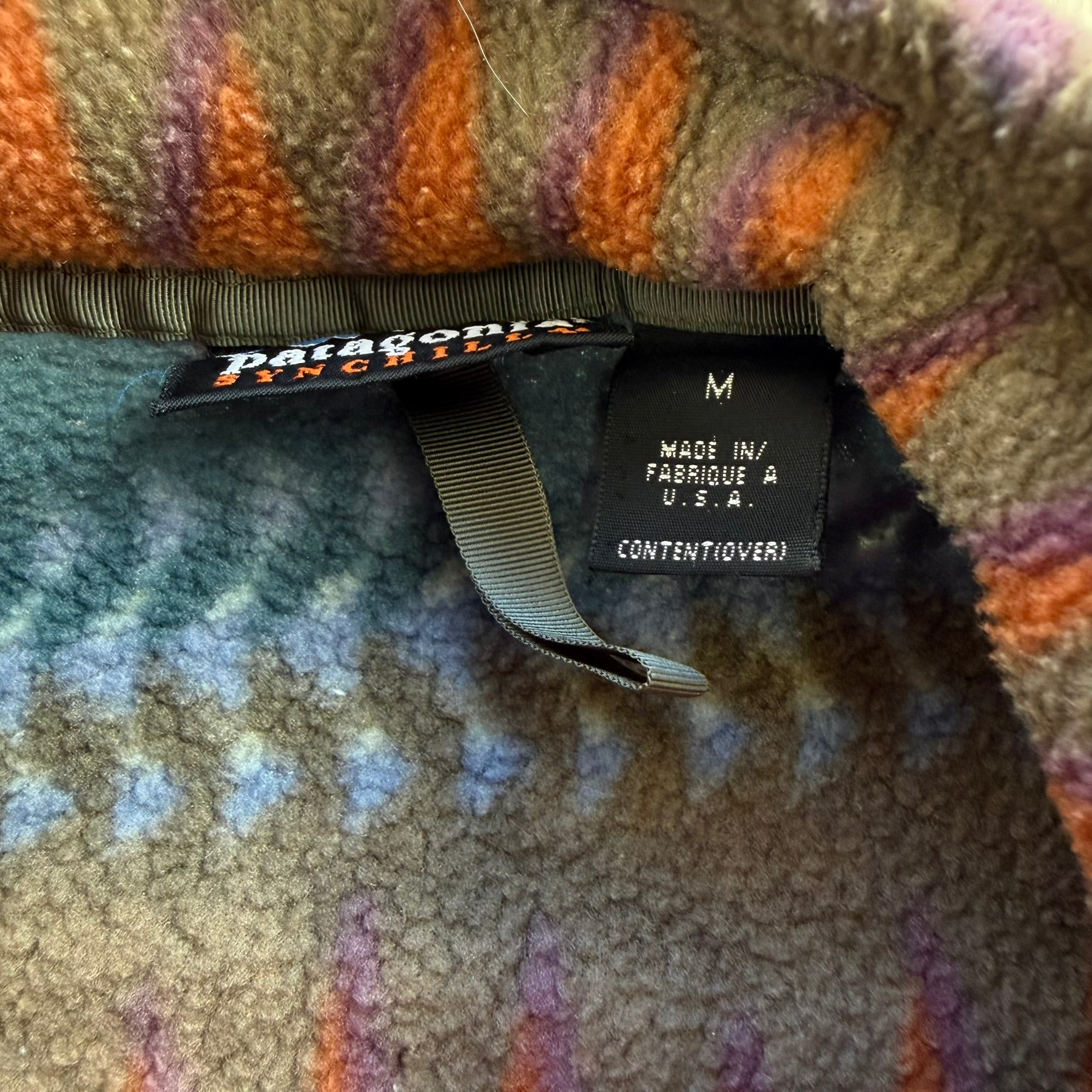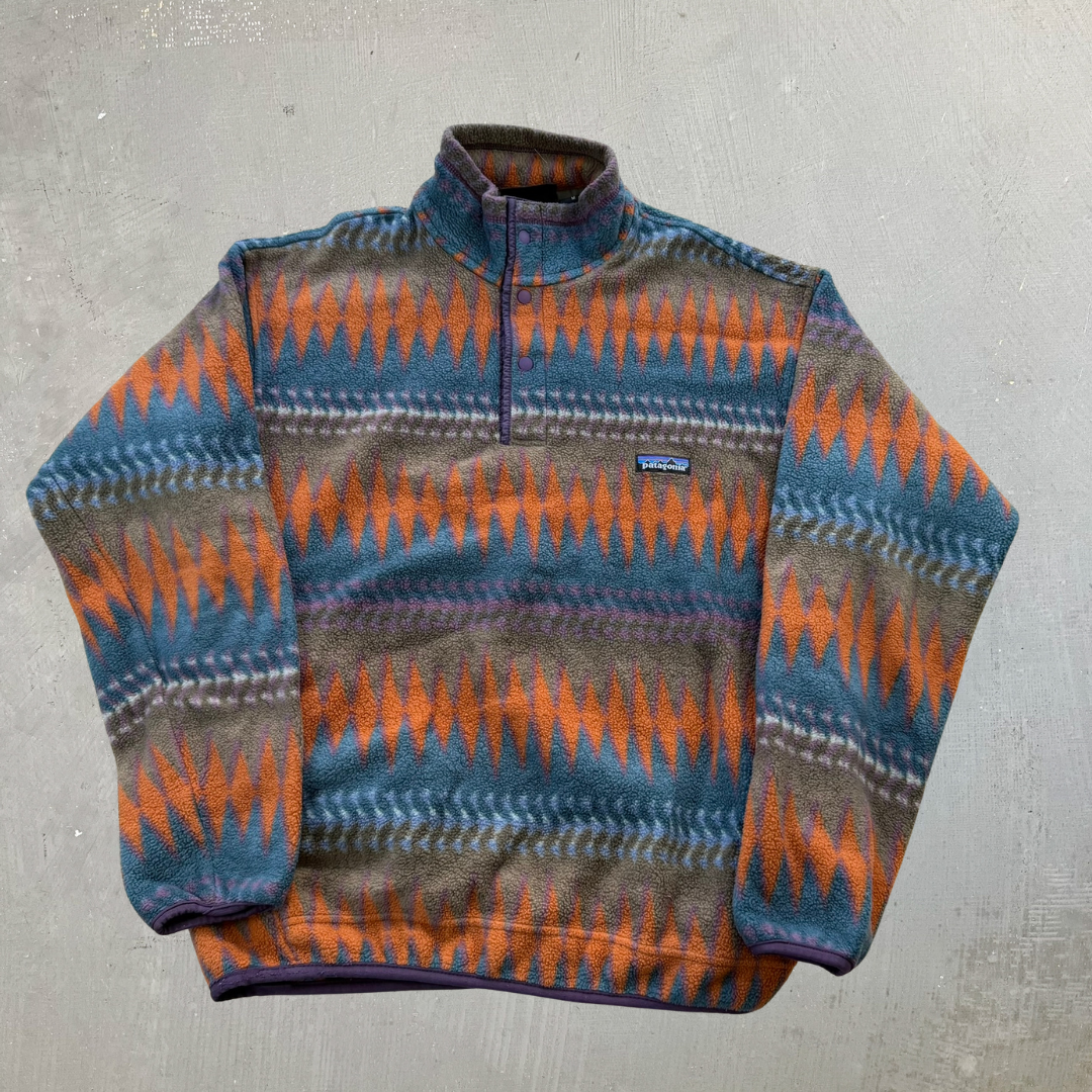 J- Vintage Patagonia Synchilla Teal/Orange Patterned Made In USA Polar Fleece - M